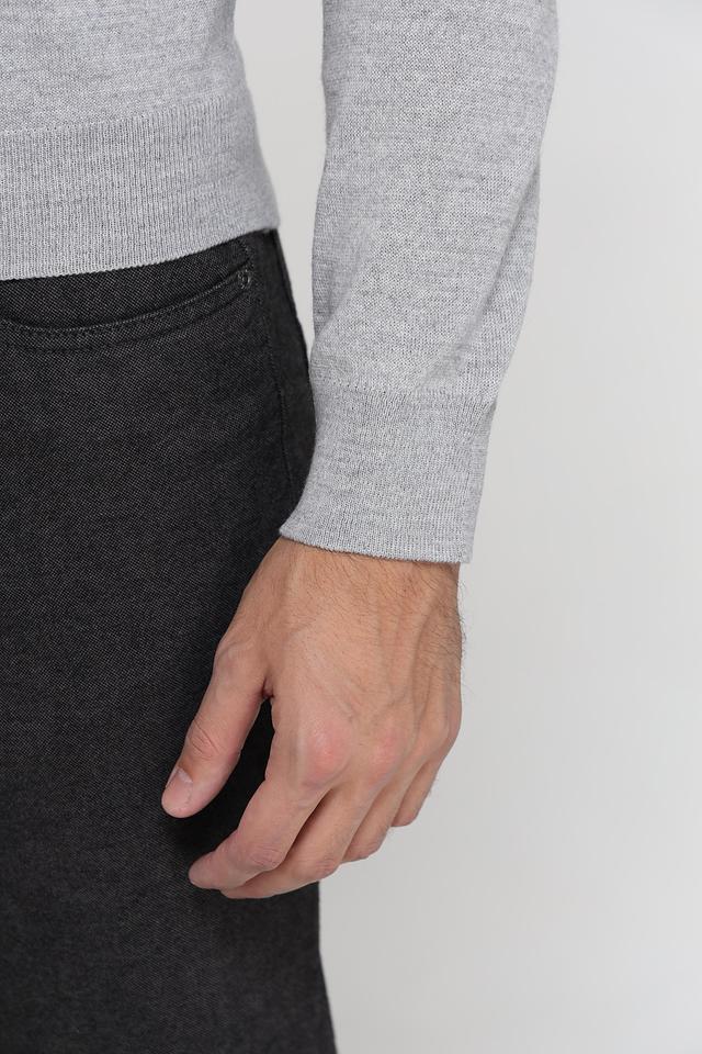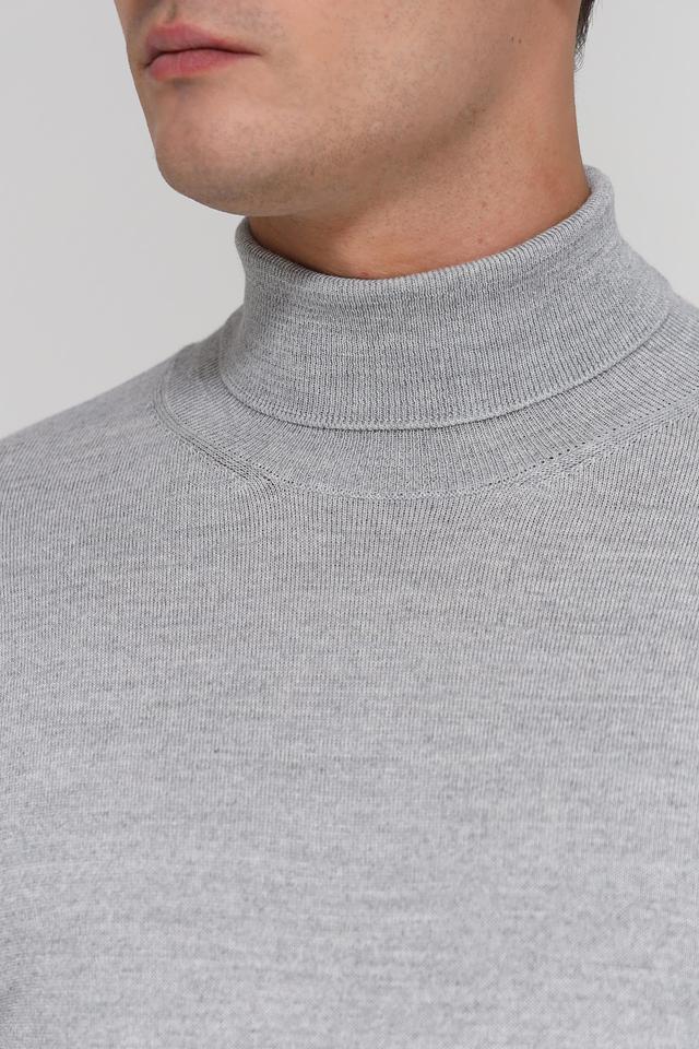 Водолазка имеет классический крой и однотонную текстуру. Высокий воротник-стойка обеспечивает дополнительное тепло и защиту от ветра. Изделие выполнено в спокойном сером цвете, который легко сочетается с различными элементами гардероба.