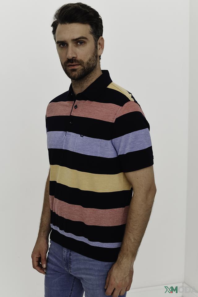 Мужское поло Monte Carlo выполнено в яркой полосатой расцветке. Модель с коротким рукавом и классическим воротником-поло станет отличным дополнением к вашему образу. Состав: хлопок 55%, полиэстер 45%