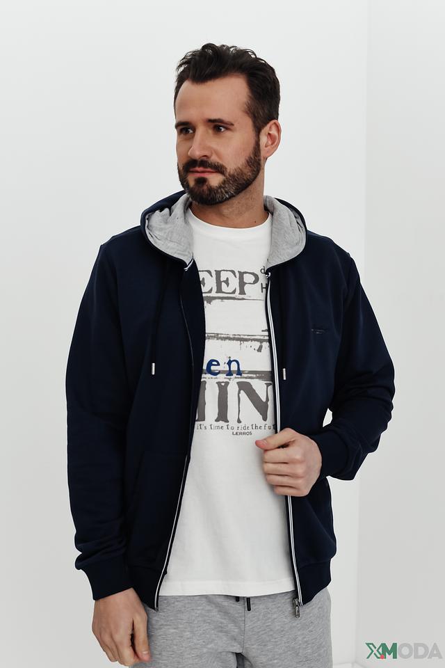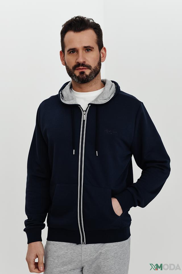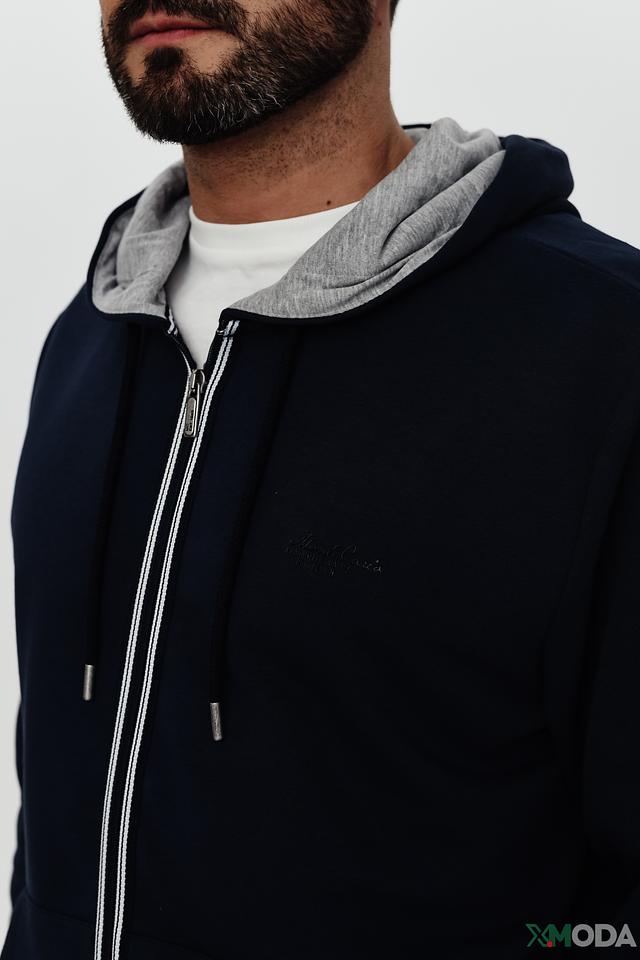 Мужской кардиган Monte Carlo синего цвета на молнии с капюшоном. Изготовлен из 100% хлопка, обеспечивающего комфорт и удобство в носке. Отличный выбор для создания стильного и практичного образа. Состав: хлопок 100%
