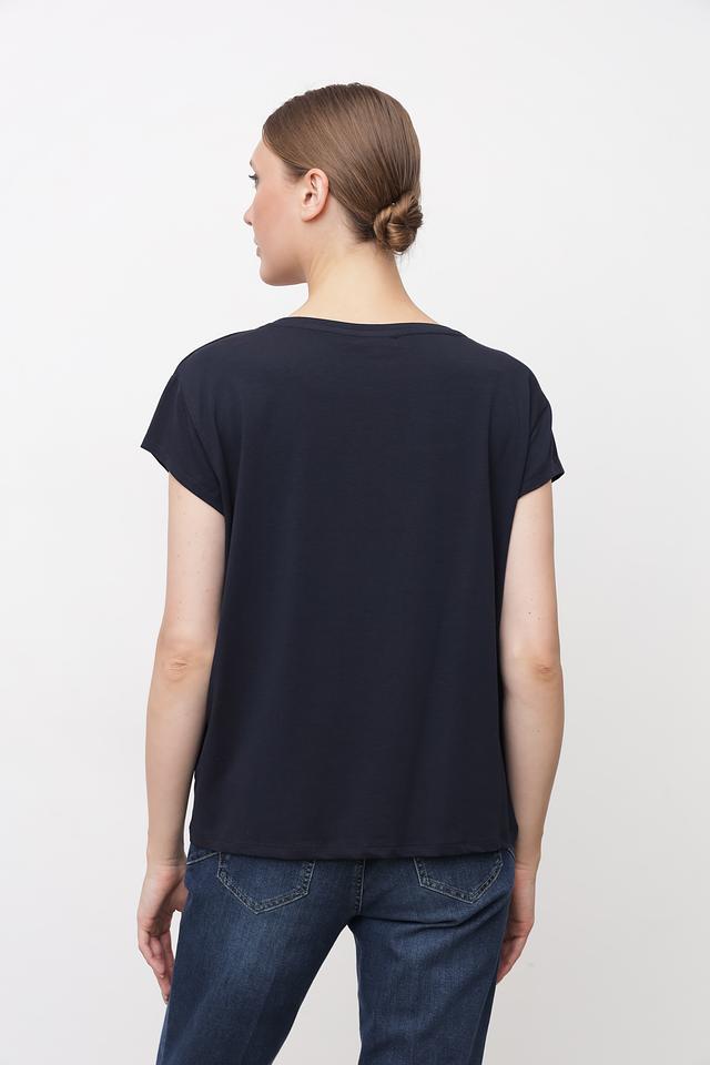 Эта стильная футболка от бренда More and More станет отличным дополнением к вашему гардеробу. Футболка выполнена в тёмно-синем цвете и имеет свободный крой, который обеспечивает комфорт и свободу движений.