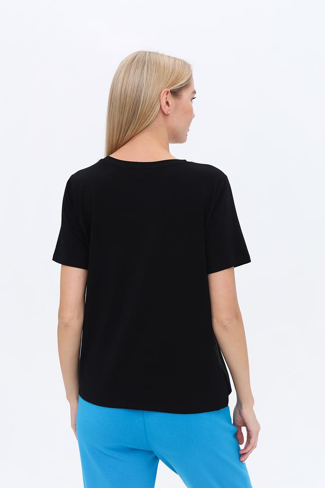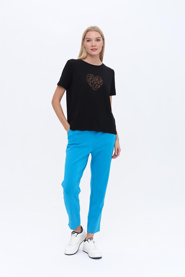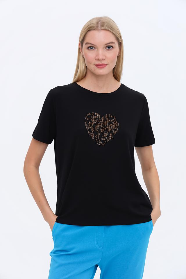 Чёрная футболка More and More с декоративным принтом в виде сердца. Изготовлена из мягкого и приятного к телу сочетания хлопка и модала, обеспечивающего комфорт в носке. Состав: хлопок 48%, модал 48%, эластан 4%