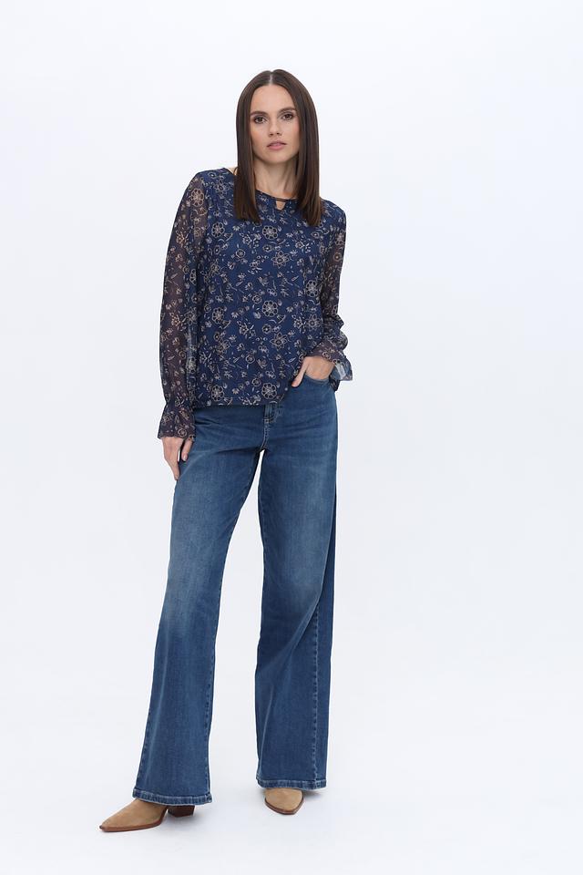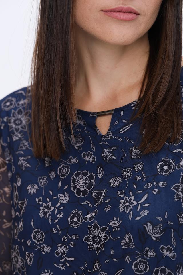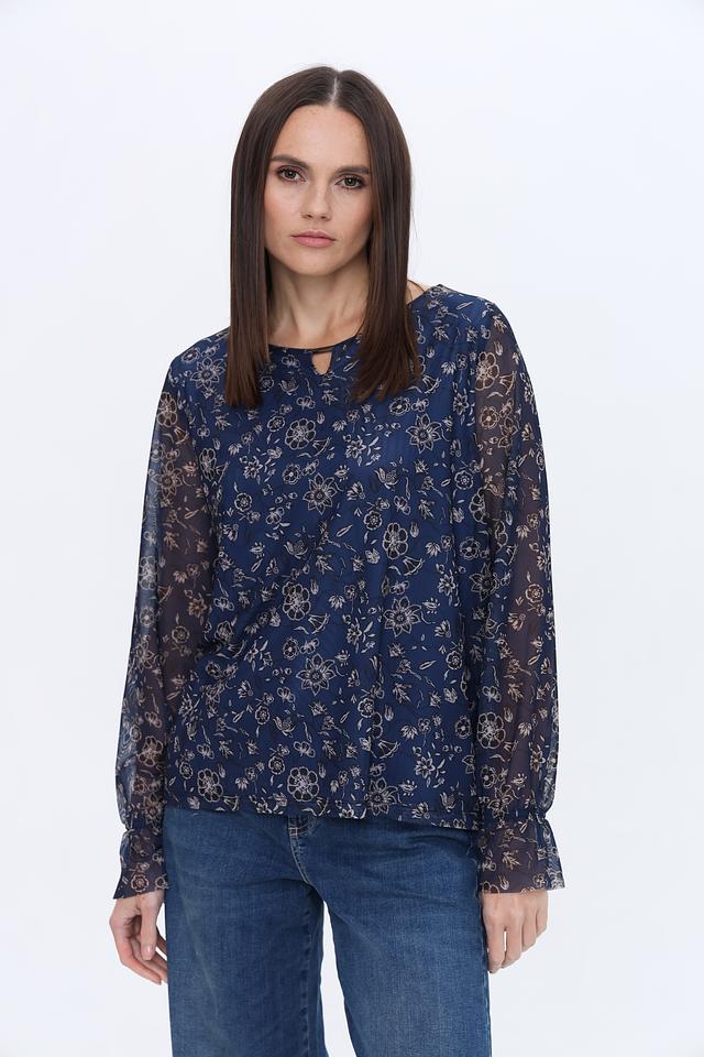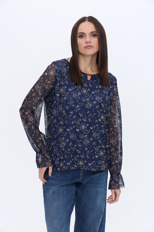 Синяя блуза More and More с цветочным принтом – стильная и лёгкая модель с длинными рукавами и вырезом-капелькой. Изготовлена из полупрозрачной ткани, что придает ей воздушность и изящество. Состав: полиэстер 92%, эластан 8%