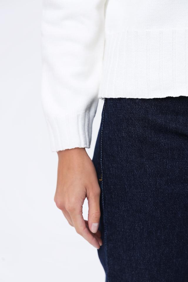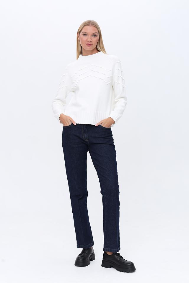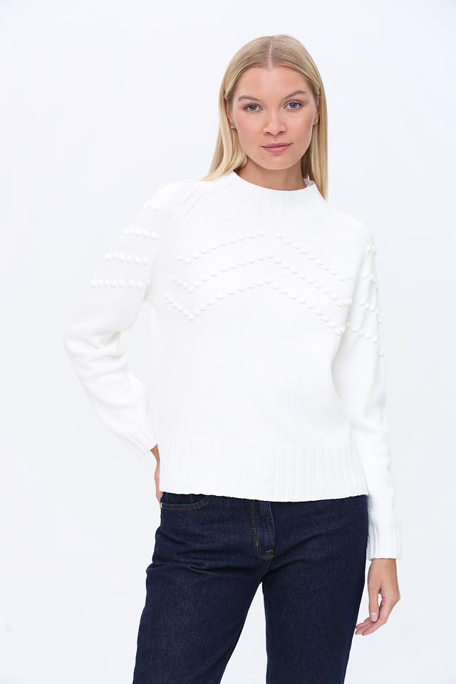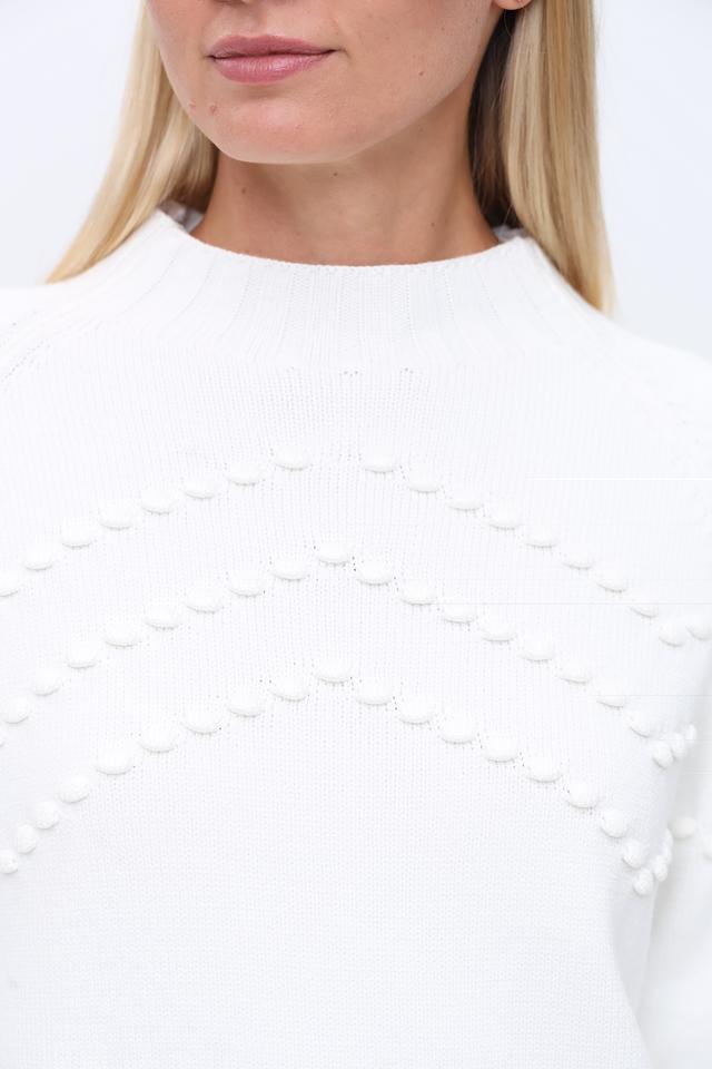 Белый пуловер от MORE and MORE с объёмным декором из бусин. Модель выполнена из мягкого трикотажа с добавлением вискозы, полиэстера и полиамида для комфорта и износостойкости. Состав: вискоза 50%, полиэстер 28%, полиамид 22%