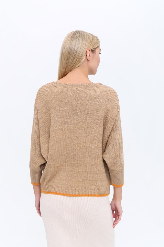 Пуловер изготовлен из сочетания полиакрила, полиамида и шерсти, что обеспечивает мягкость, тепло и долговечность изделия. Низ пуловера и рукава отделаны оранжевой резинкой, добавляя акцент и завершенность образу.