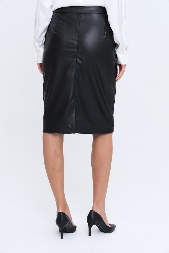 Чёрная юбка-карандаш от MORE and MORE выполнена из гладкой экокожи. Классический крой и лаконичный дизайн делают эту юбку универсальным элементом гардероба. Состав: полиэстер 65%, полиуретан 35%