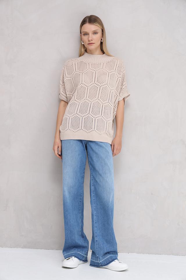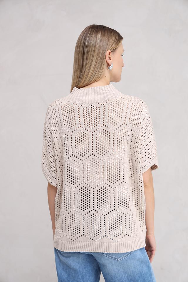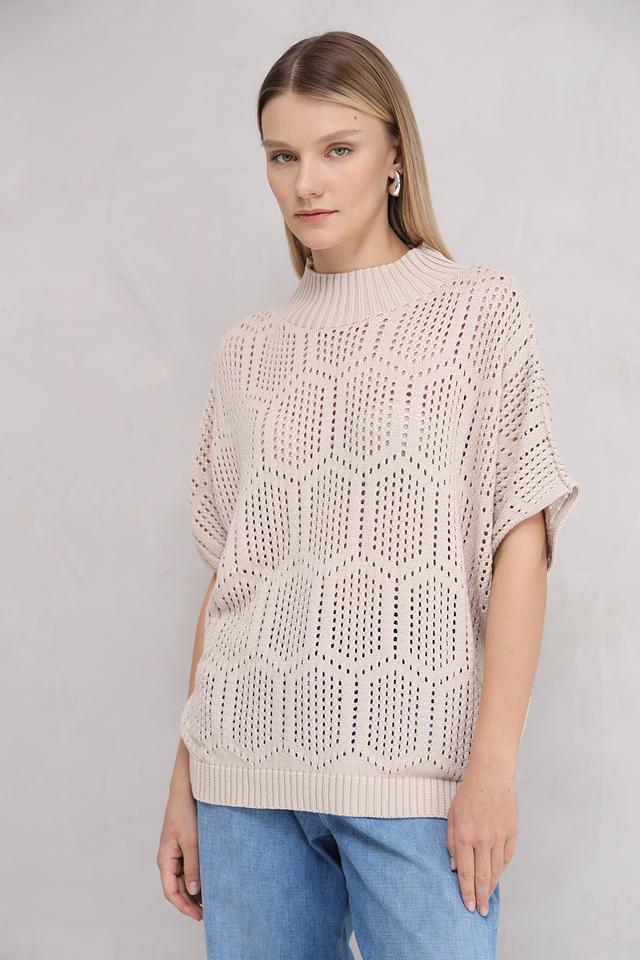 Бежевый пуловер от MORE and MORE с ажурной вязкой и короткими рукавами станет стильным дополнением к вашему гардеробу. Модель выполнена из мягкого и приятного к телу сочетания хлопка и полиакрила. Состав: хлопок 50%, полиакрил 50%