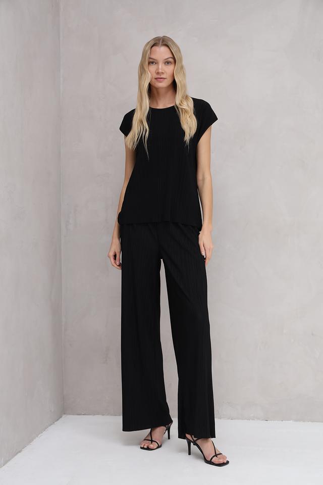 Чёрная футболка от MORE and MORE из 100% полиэстера. Модель с коротким рукавом и круглым вырезом горловины, имеет текстурированную поверхность. Идеально подходит для создания повседневных образов. Состав: полиэстер 100%