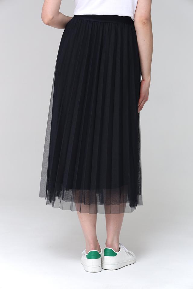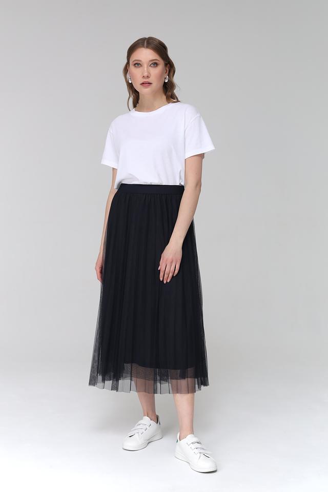 Юбка имеет классический чёрный цвет и фасон плиссе, который придает ей изящность и женственность. Длина миди делает ее универсальной для различных случаев – от повседневной носки до особых мероприятий.