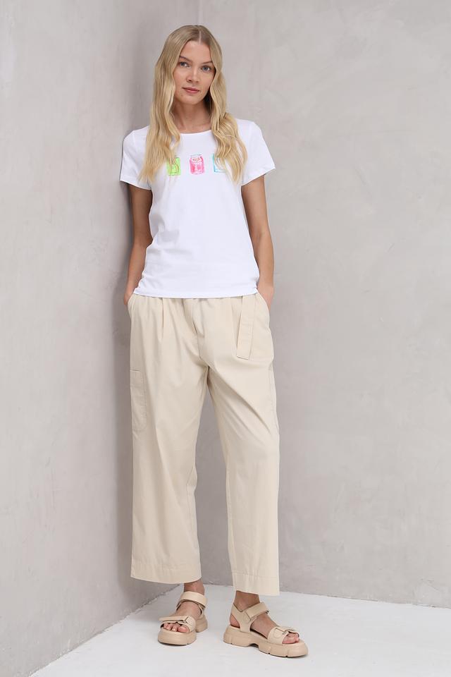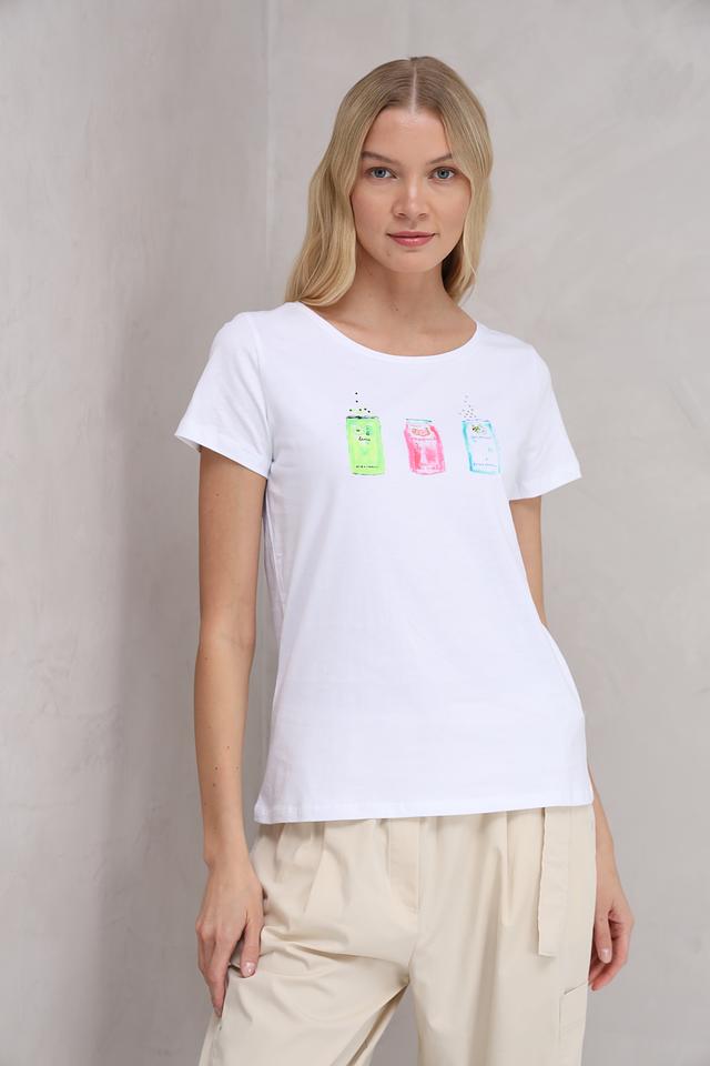 Белая футболка More and More с ярким принтом в виде банок лайма, грейпфрута и кокоса станет отличным дополнением к вашему летнему гардеробу. Изготовлена из 100% хлопка, обеспечивая комфорт и воздухопроницаемость. Состав: хлопок 100%