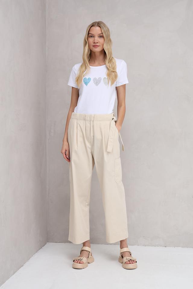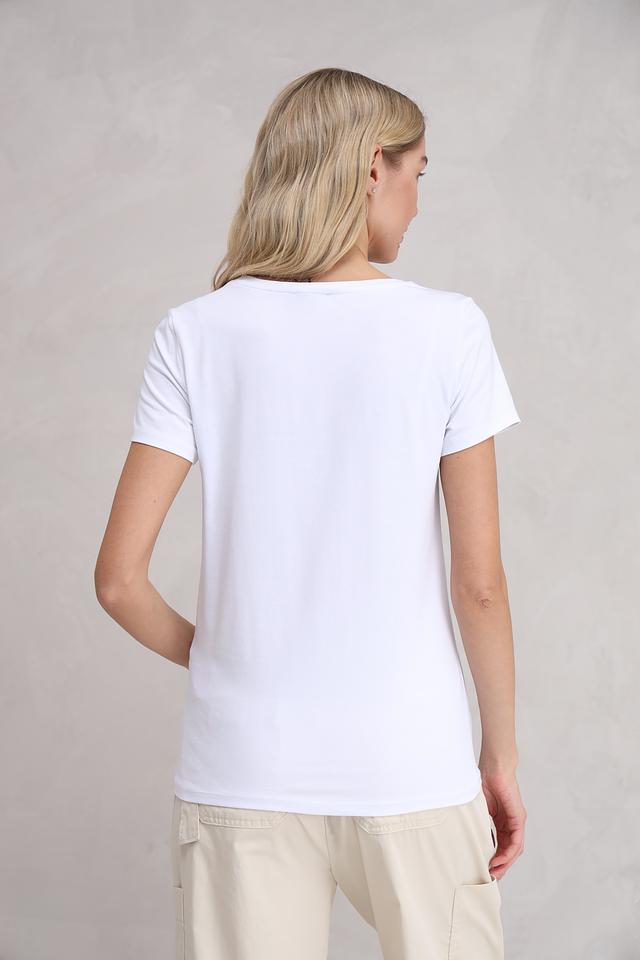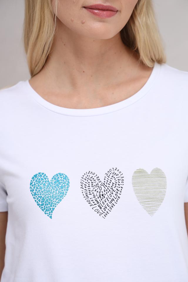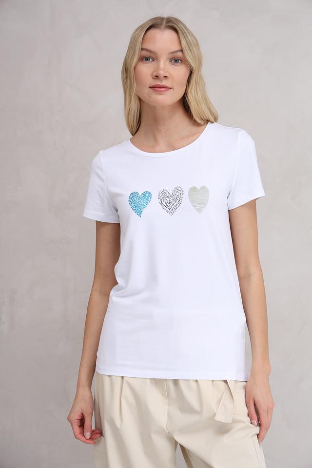 Белая футболка More and More с декоративными сердцами — стильная и комфортная базовая вещь. Изготовлена из мягкого хлопка с модалом и эластаном, обеспечивающим удобную посадку. Состав: хлопок 48%, модал 48%, эластан 4%