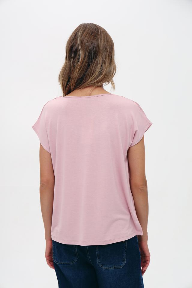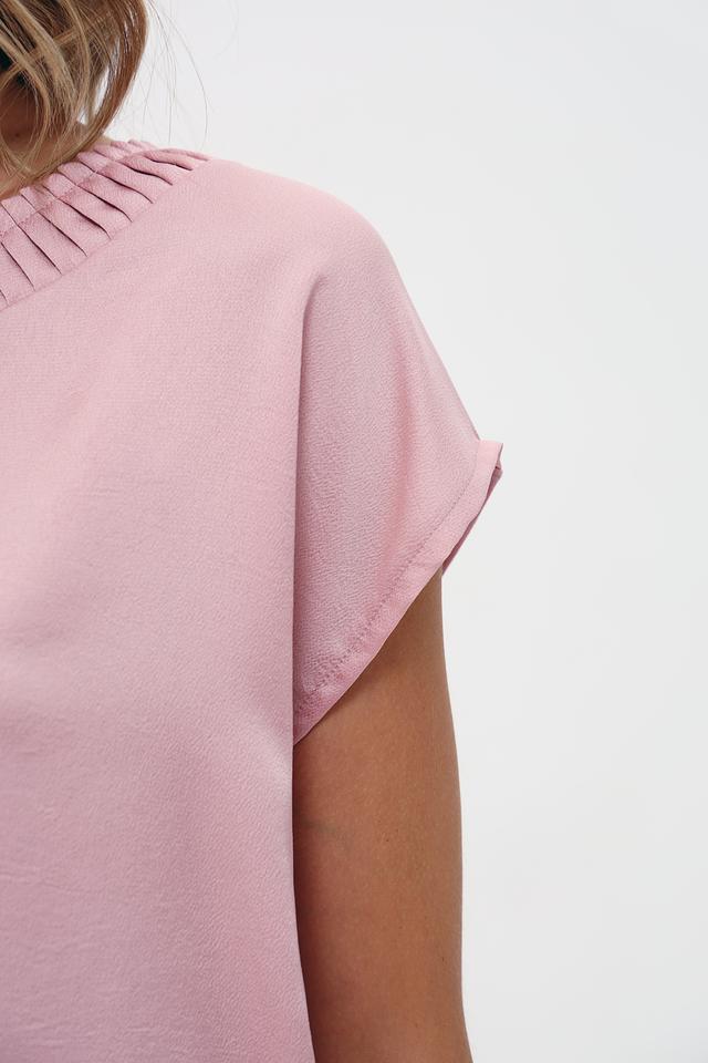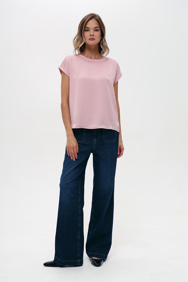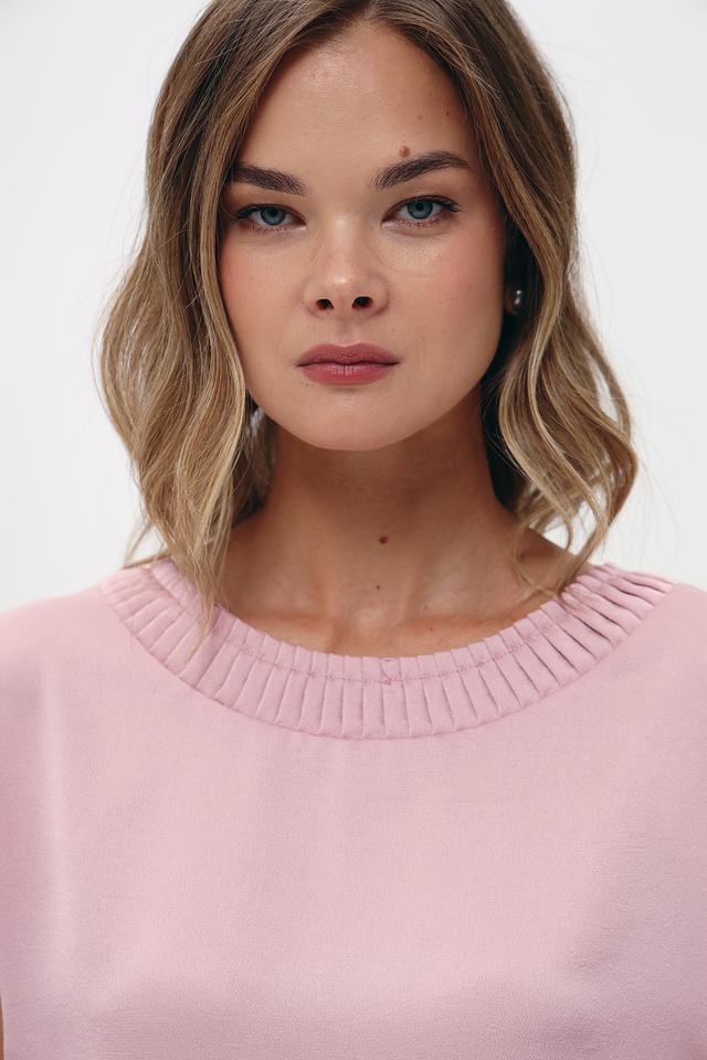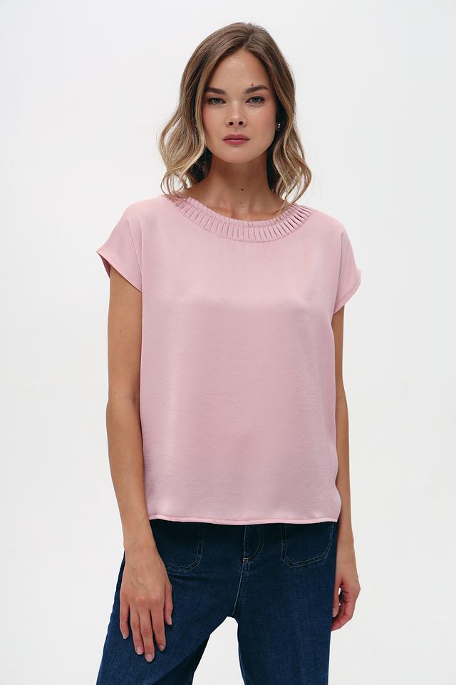 Женская блуза More and More нежно-розового цвета с округлым вырезом и декоративной рюшью. Изготовлена из мягкой и приятной к телу вискозы, обеспечивающей комфорт в носке. Состав: вискоза 100%