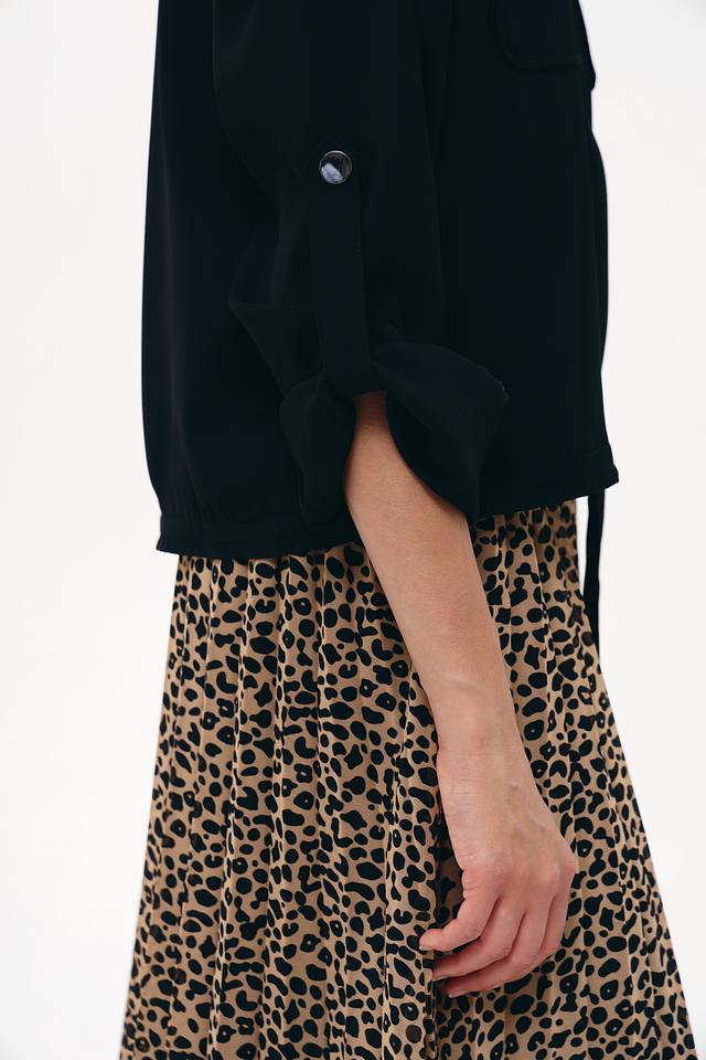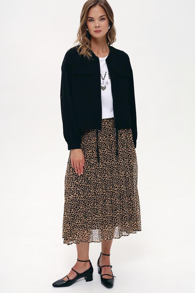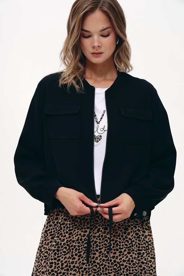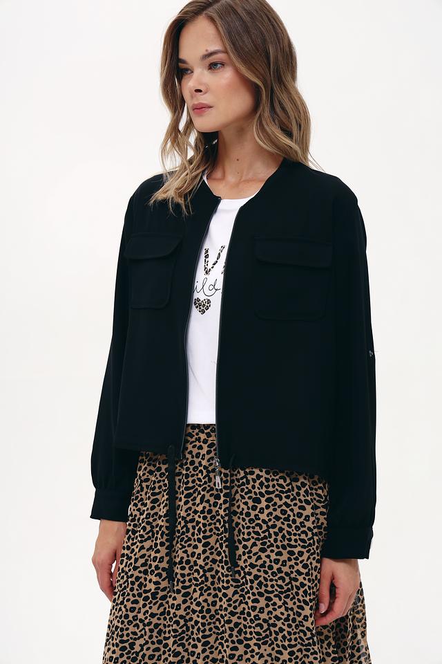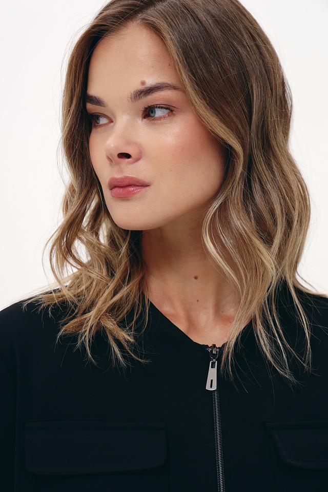 Жакет имеет удобную застёжку на молнию, а также два функциональных кармана. Крой модели обеспечивает комфортную посадку по фигуре, а рукава с манжетами добавляют образу завершенности.