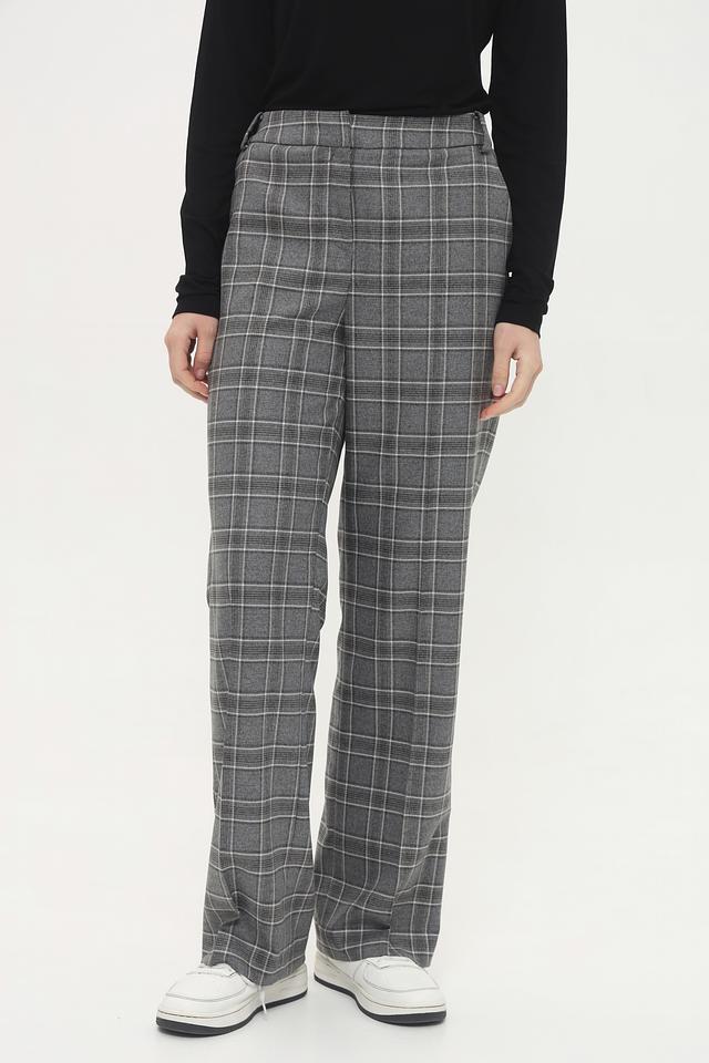 Женские брюки More and More серого цвета в классическую клетку — стильное и комфортное решение для создания повседневных образов. Модель выполнена из мягкой ткани с добавлением вискозы и эластана, обеспечивающих удобную посадку и свободу движений. Состав: полиэстер 63%, вискоза 34%, эластан 3%
