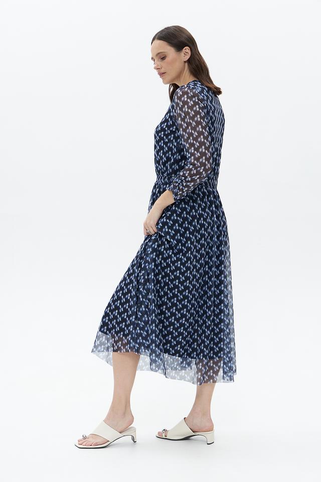 Платье More and More синего цвета с нежным цветочным принтом – идеальный выбор для создания романтичного образа. Легкая полупрозрачная ткань и плиссированная юбка придают модели воздушность и изящество. Состав: полиэстер 92%, эластан 8%