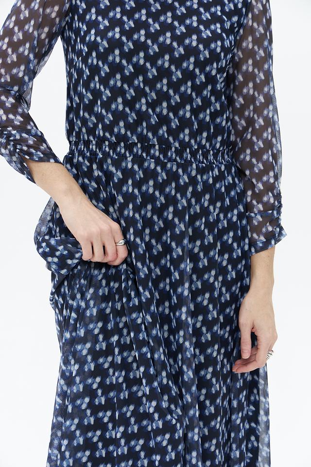 Это платье от MORE and MORE выполнено из полиэстера и эластана, что обеспечивает комфорт и удобство в носке. Основной цвет платья – глубокий синий, который служит прекрасным фоном для деликатного цветочного принта.
