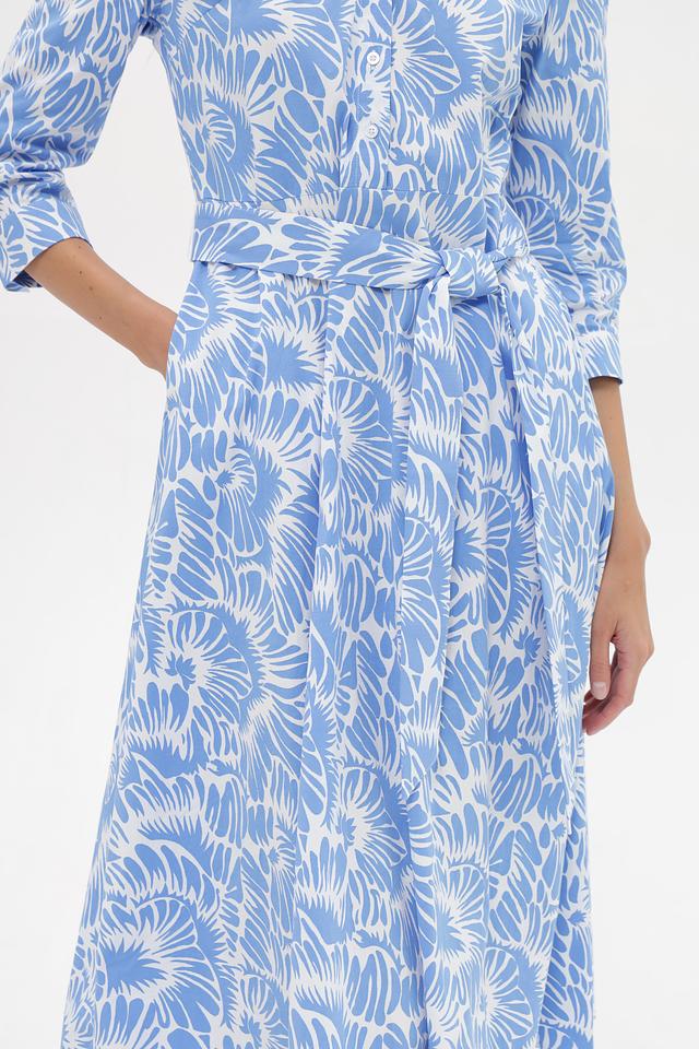 Голубое платье-рубашка от MORE and MORE с ярким цветочным принтом. Модель выполнена из хлопка с добавлением эластана, что обеспечивает комфорт и свободу движений. Состав: хлопок 97%, эластан 3%