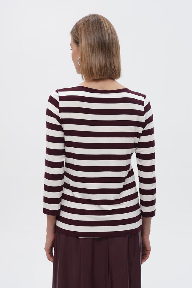 Блузка More and More бордового цвета с классическим полосатым принтом. Изготовлена из мягкой вискозы с добавлением эластана для комфорта и хорошей посадки. Подчеркнет ваш стиль и станет отличным дополнением к базовому гардеробу. Состав: вискоза 95%, эластан 5%