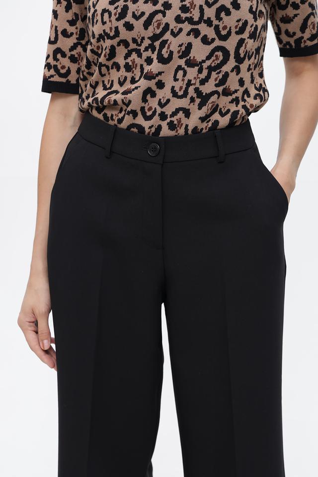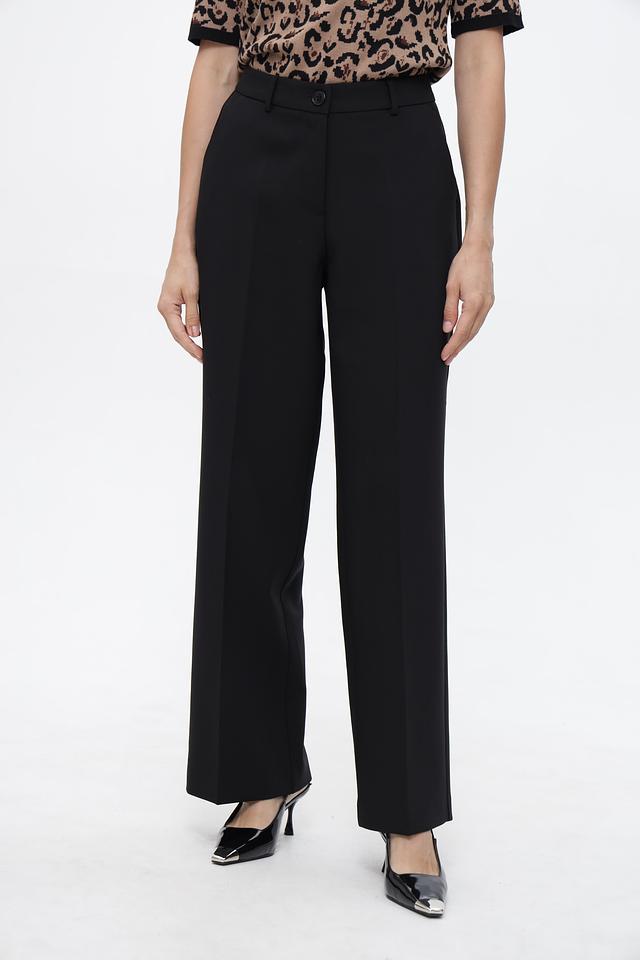 Брюки имеют прямой крой и среднюю посадку, что обеспечивает комфортную посадку по фигуре. Ткань, в составе которой переработанный полиэстер, вискоза и эластан, приятна на ощупь и хорошо держит форму.