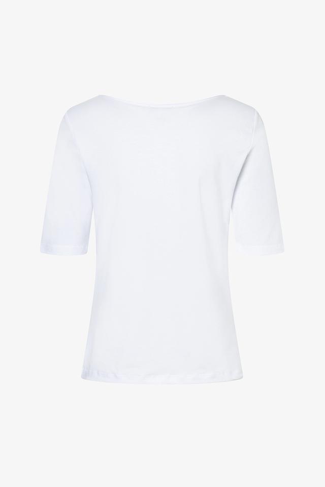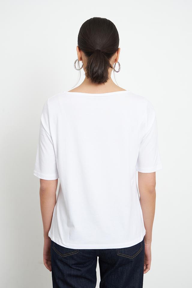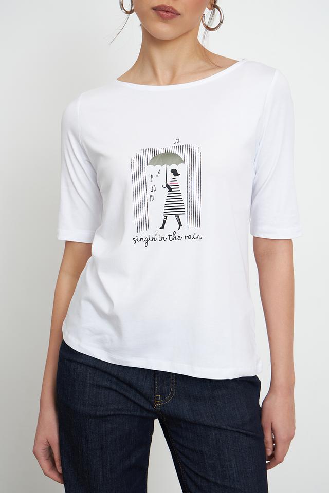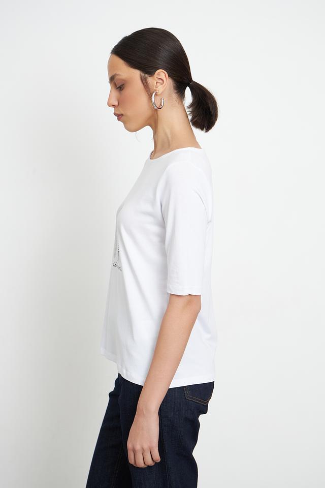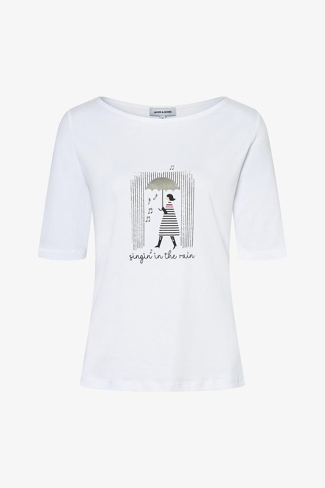 Белая футболка MORE and MORE с оригинальным принтом – стильное и комфортное решение для повседневного образа. Изготовлена из мягкого и приятного к телу сочетания хлопка и модала, обеспечивающего удобство при носке. Состав: хлопок 48%, модал 48%, эластан 4%