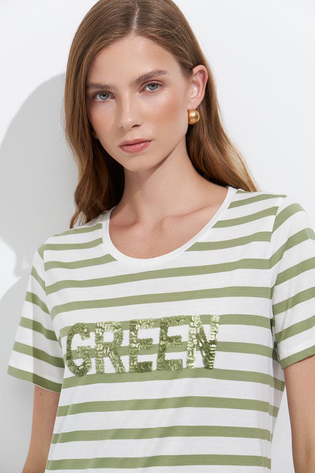 Женская футболка MORE and MORE зеленого и белого цвета с ярким принтом "GREEN" станет отличным дополнением к вашему гардеробу. Модель выполнена из мягкого и приятного к телу сочетания хлопка и модала. Состав: хлопок 50%, модал 50%