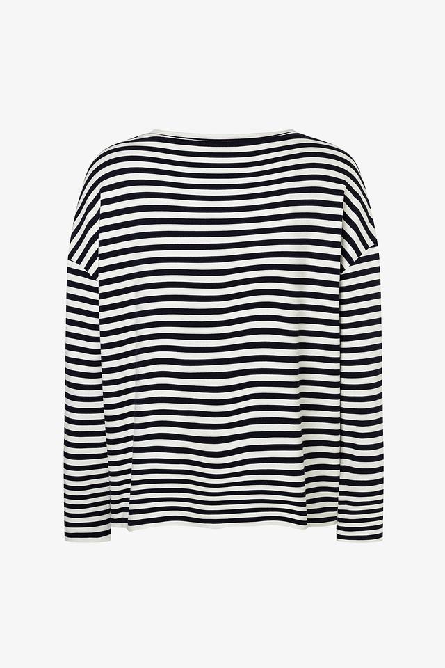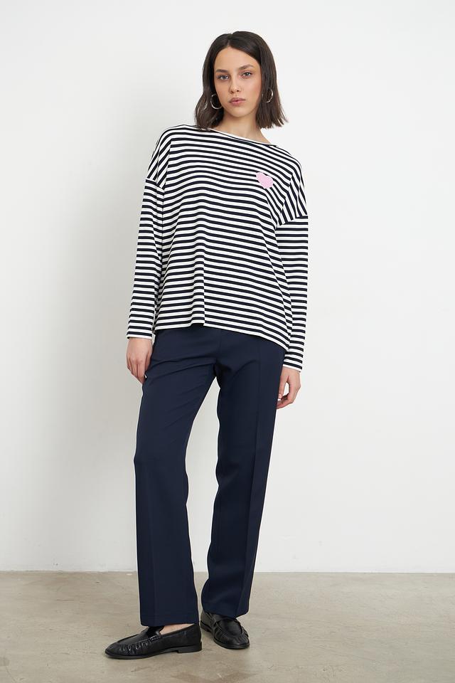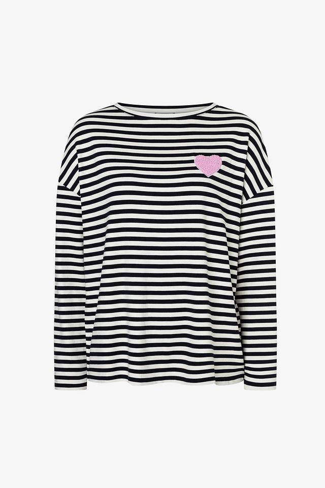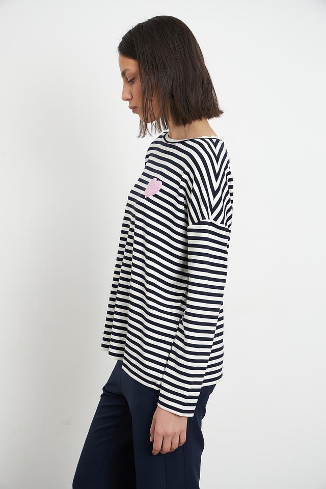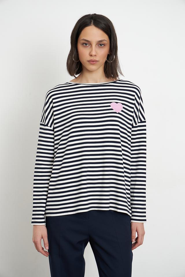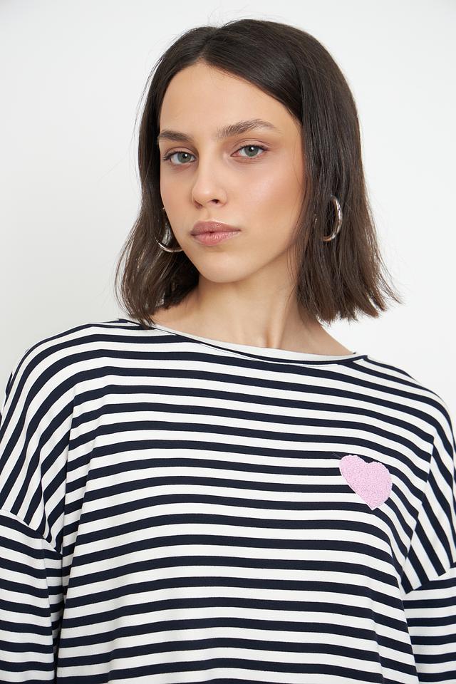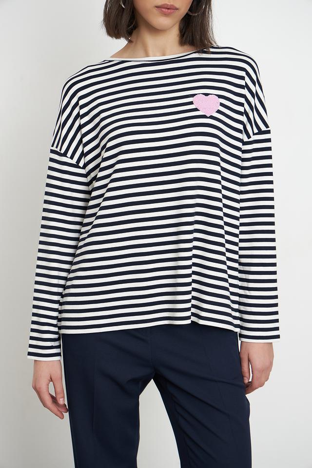 Женская футболка MORE and MORE чёрно-белого цвета с длинным рукавом и декоративным сердечком. Изготовлена из мягкой вискозы с добавлением эластана для комфорта и хорошей посадки. Состав: вискоза 95%, эластан 5%