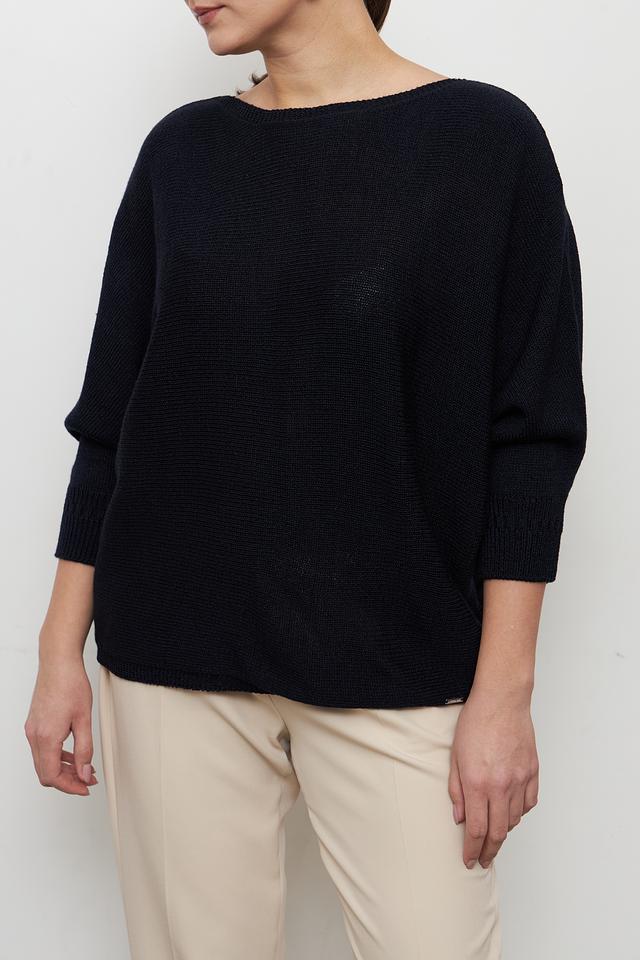 Пуловер имеет свободный крой, который обеспечивает комфорт в носке. Округлый вырез горловины и рукава три четверти придают ему элегантный вид. Материал – сочетание полиакрила (92%) и полиамида (8%), что обеспечивает мягкость, тепло и долговечность изделия.