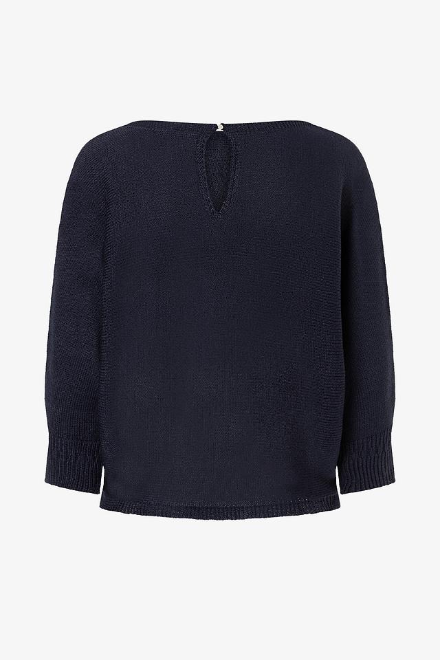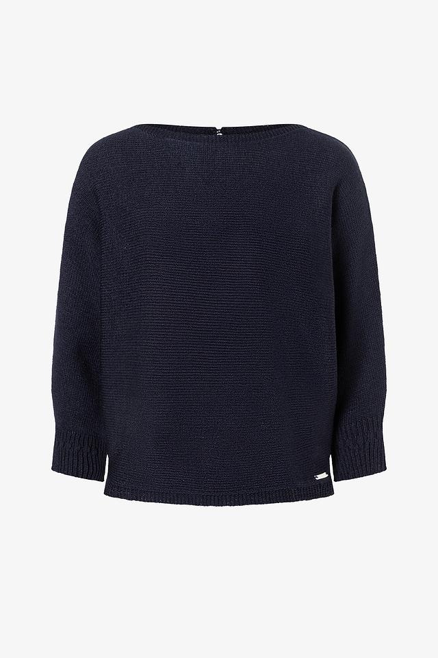 Тёмно-синий пуловер от MORE and MORE с округлым вырезом и рукавами 3/4. Изготовлен из мягкого полиакрила с добавлением полиамида для большей износостойкости. Стильный и комфортный выбор для повседневного гардероба. Состав: полиакрил 92%, полиамид 8%