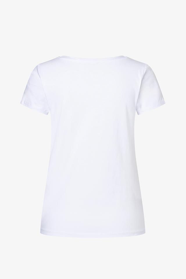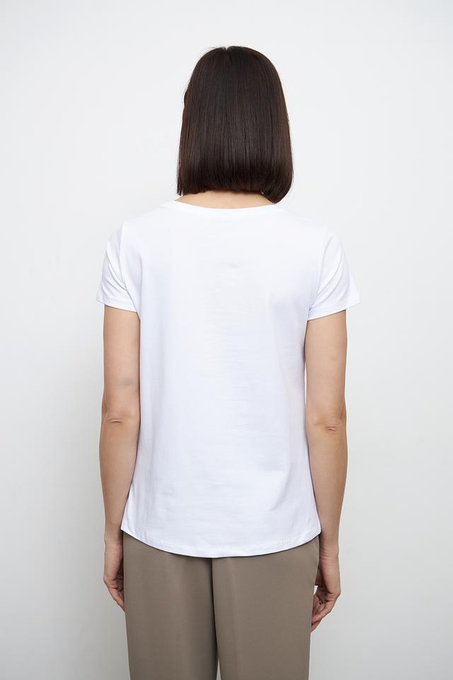 Эта белая футболка от MORE and MORE – идеальный выбор для создания повседневного, но стильного образа. Она выполнена из высококачественного хлопка (95%) с добавлением эластана (5%), что обеспечивает комфортную посадку и приятные ощущения на коже.