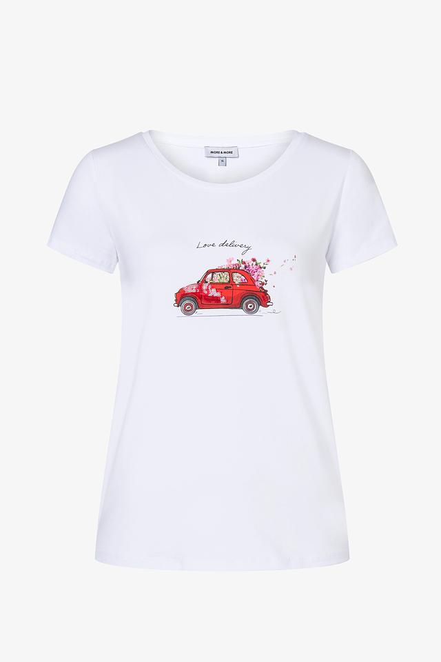 Белая футболка MORE and MORE с ярким принтом автомобиля станет отличным дополнением к вашему образу. Изготовлена из мягкого хлопка с добавлением эластана для комфорта и свободы движений. Состав: хлопок 95%, эластан 5%