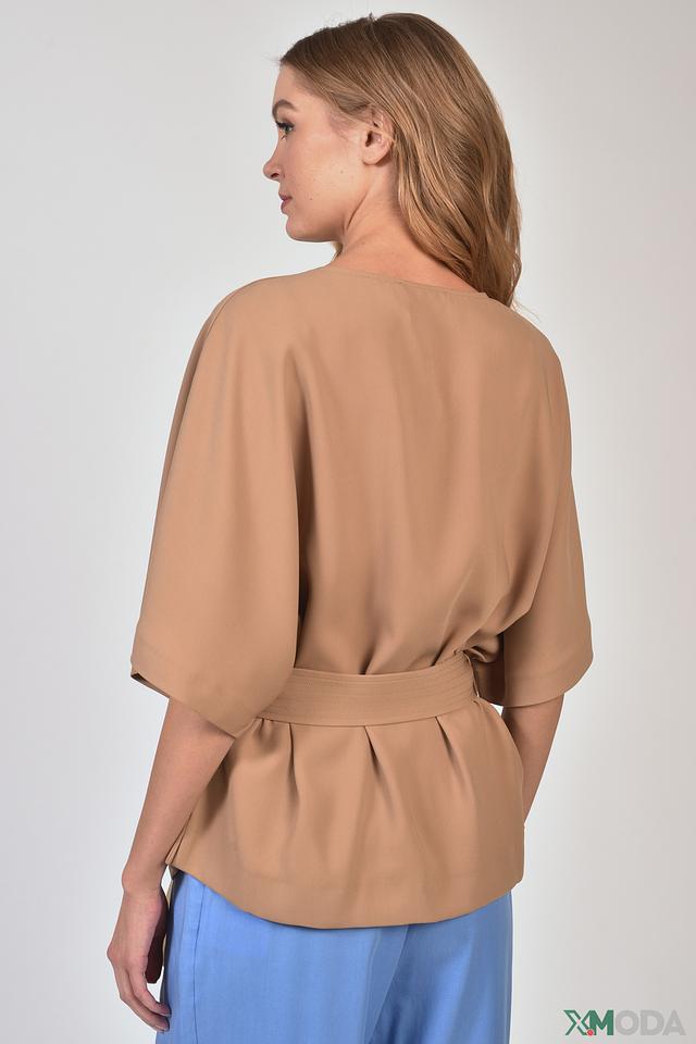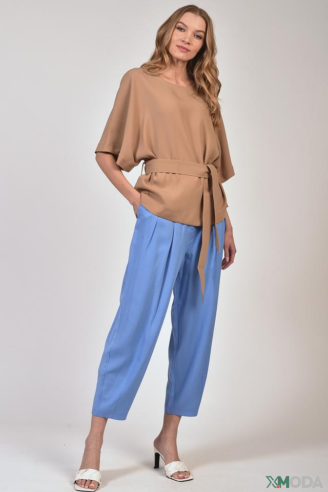 Модель имеет свободный крой, который не сковывает движений, и короткие рукава, идеально подходящие для теплой погоды. Округлый вырез горловины придает блузе элегантный вид. Блуза комплектуется поясом в тон, который позволяет подчеркнуть талию и создать более женственный силуэт.