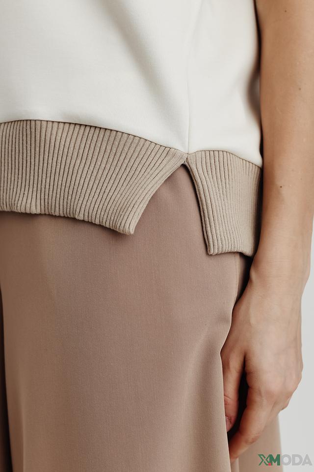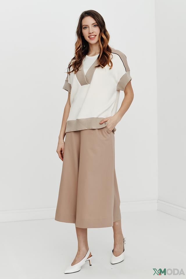Стильный жилет Mos Mosh бежевого и молочного цвета с V-образным вырезом и контрастной отделкой. Модель выполнена из мягкой вискозы с добавлением полиэстера и эластана, обеспечивающих комфорт и хорошую посадку. Состав: вискоза 78%, полиэстер 15%, эластан 7%
