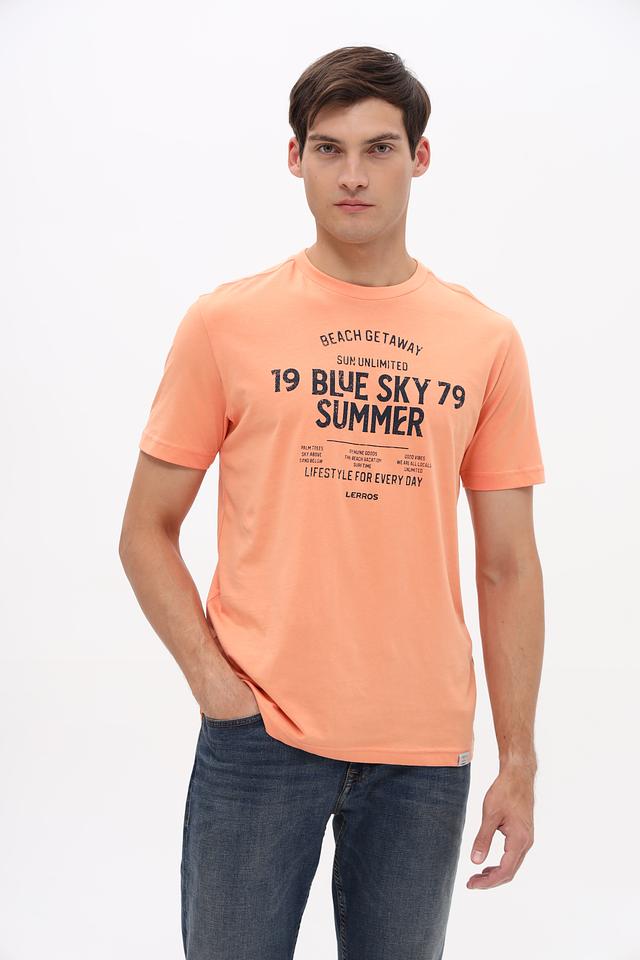 Мужская футболка Lerros персикового цвета с ярким принтом – стильный выбор для повседневной носки. Изготовлена из 100% хлопка, обеспечивающего комфорт и воздухопроницаемость. Состав: хлопок 100%