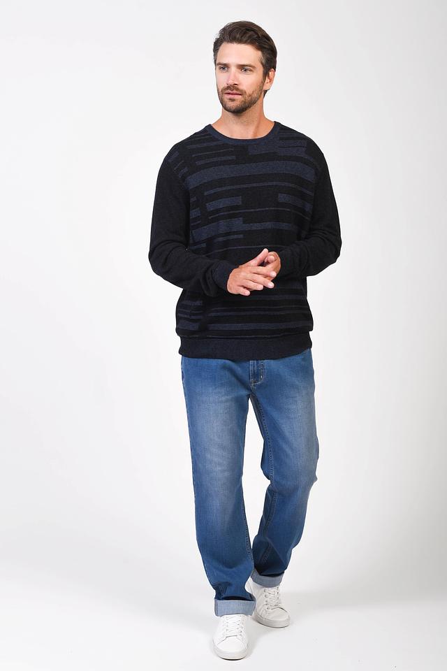 Мужской джемпер Pezzo чёрного цвета с оригинальным полосатым рисунком. Изготовлен из мягкой вискозы с добавлением шерсти и полиамида для комфорта и долговечности. Состав: вискоза 55%, шерсть 23%, полиамид 22%