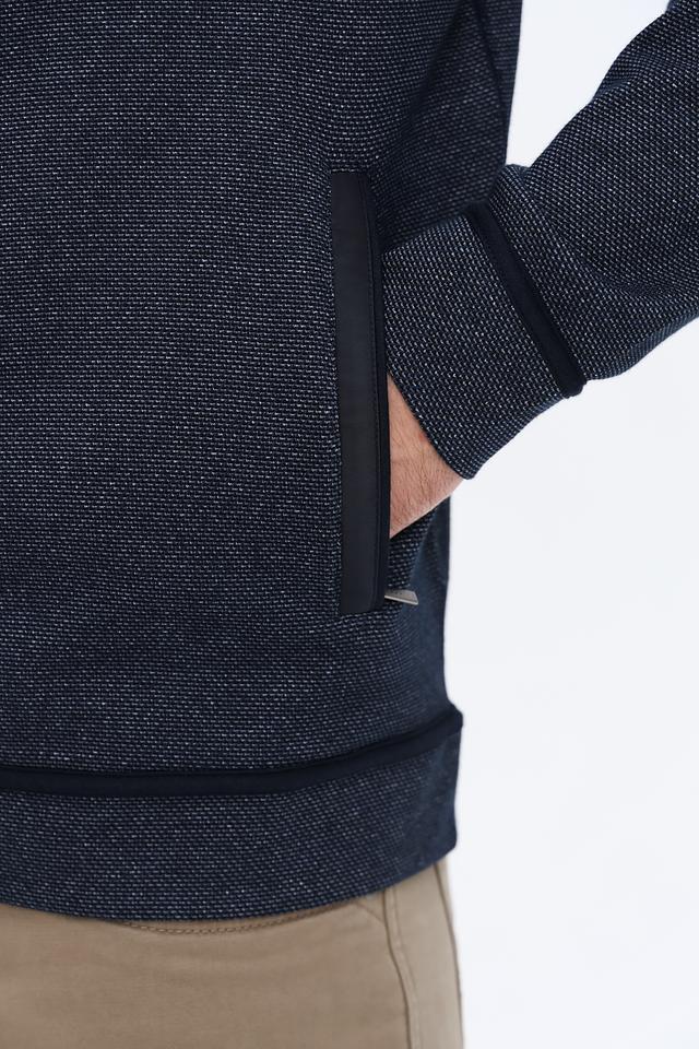 Кардиган имеет удобную застёжку на молнии, что позволяет легко регулировать степень тепла. Ткань, из которой изготовлен кардиган, сочетает в себе 60% хлопка, 35% полиэстера и 5% эластана. Хлопок обеспечивает комфорт и воздухопроницаемость, полиэстер – износостойкость, а эластан – эластичность и хорошую посадку по фигуре.