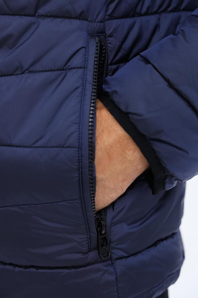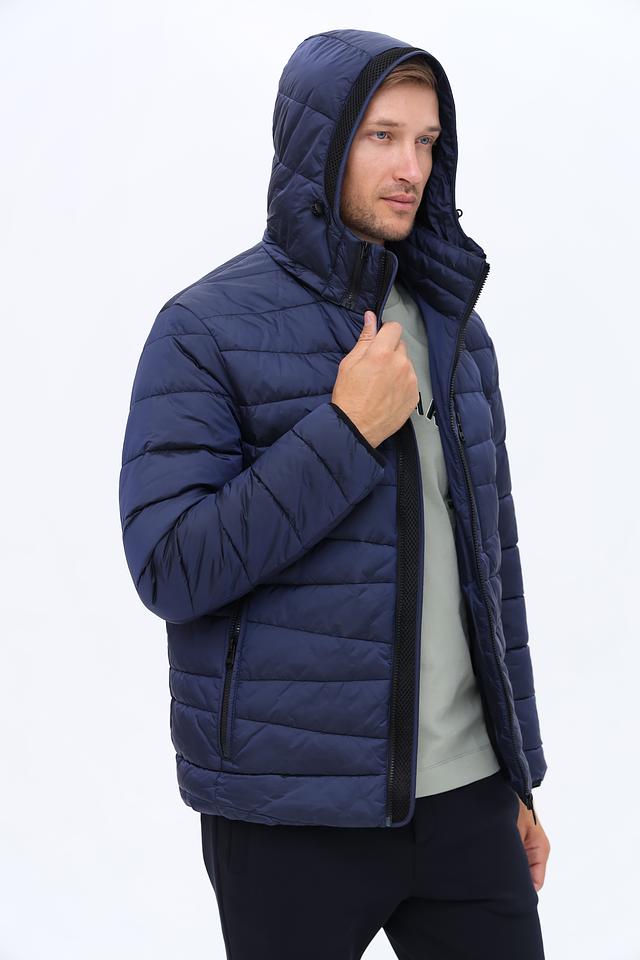 Стильная мужская куртка New Canadian синего цвета – это отличный выбор для прохладной погоды. Удобный капюшон и стеганая текстура придают модели современный вид, а практичные карманы обеспечивают функциональность. Состав: полиэстер 100%