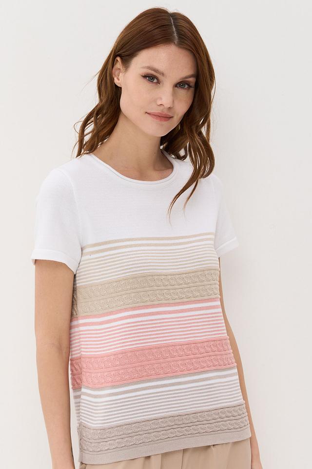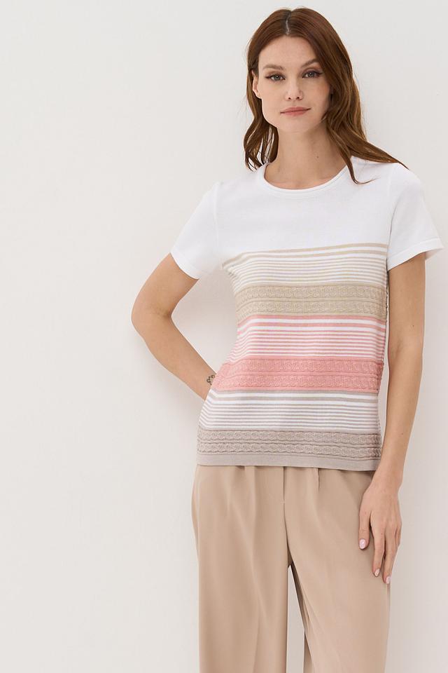 Женский джемпер NEWVAY белого цвета с ярким полосатым узором станет отличным дополнением к вашему гардеробу. Модель с короткими рукавами и круглым вырезом подчеркнет ваш стиль и индивидуальность. Состав: