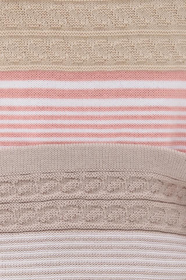 Джемпер выполнен из приятной к телу ткани, обеспечивающей комфорт в носке. Полосатый узор добавляет динамичности и оригинальности изделию. Он идеально подойдет для создания повседневных и более нарядных луков.