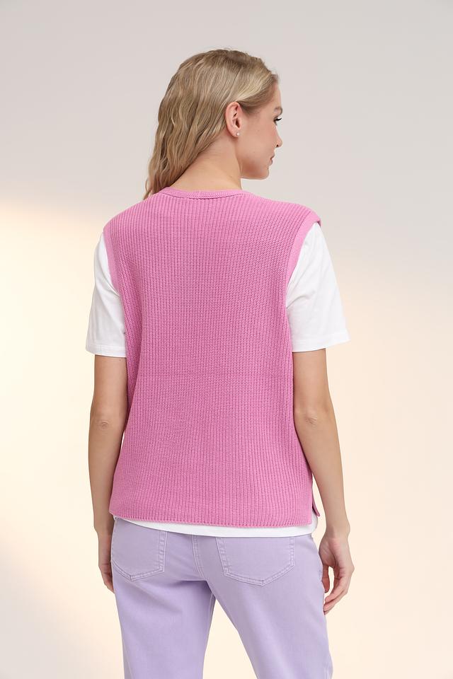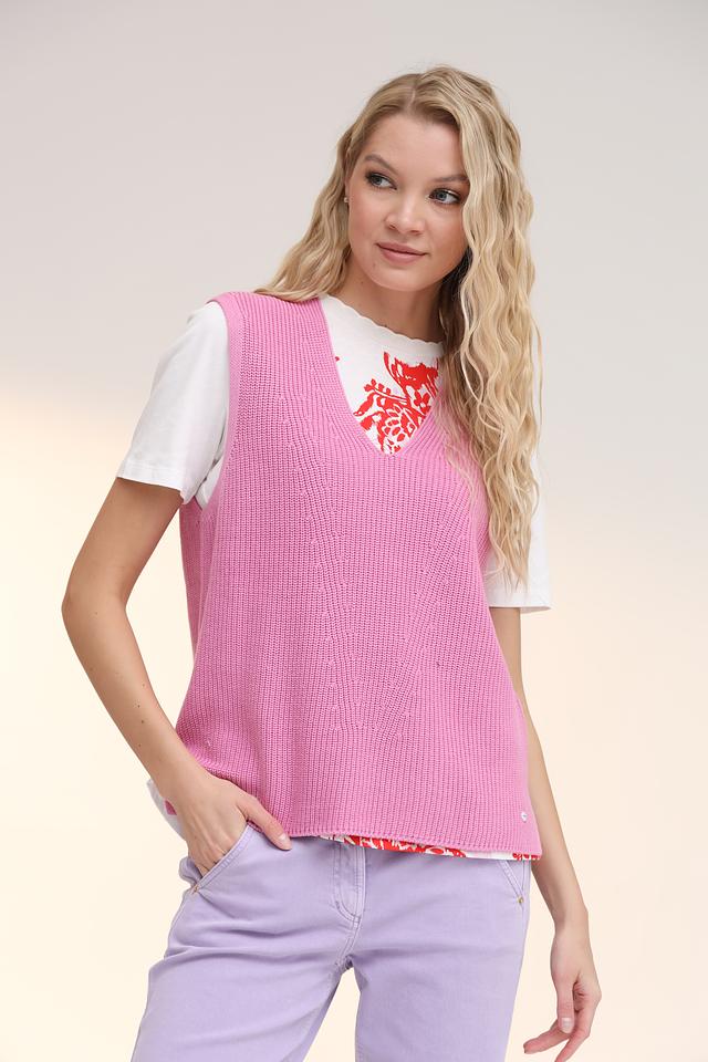 Розовый вязаный жилет Olsen из мягкого трикотажа станет стильным дополнением к вашему образу. Модель имеет V-образный вырез и прямой крой, идеально сочетается с различными стилями одежды. Состав: хлопок 50%, полиакрил 50%