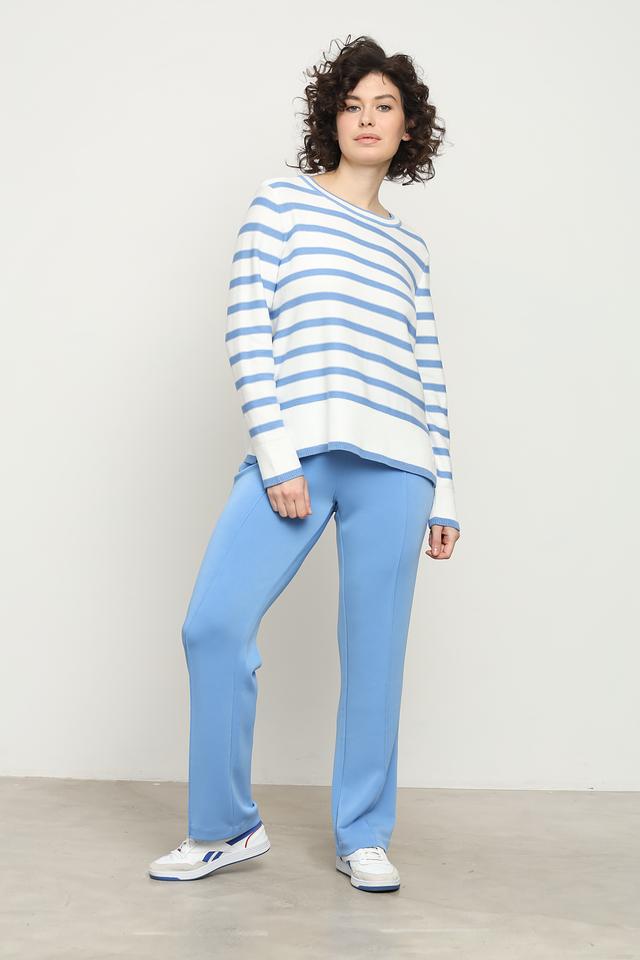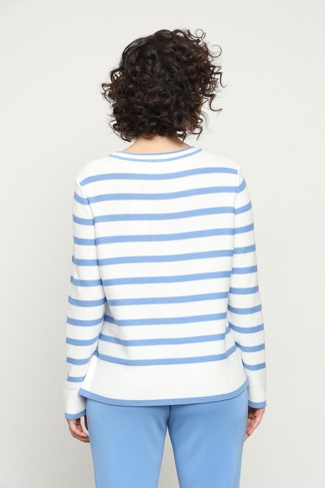 Этот стильный пуловер от Olsen станет отличным дополнением к вашему гардеробу. Пуловер выполнен в горизонтальную полоску, сочетающую голубой и белый цвета, что придает ему свежий и легкий вид.