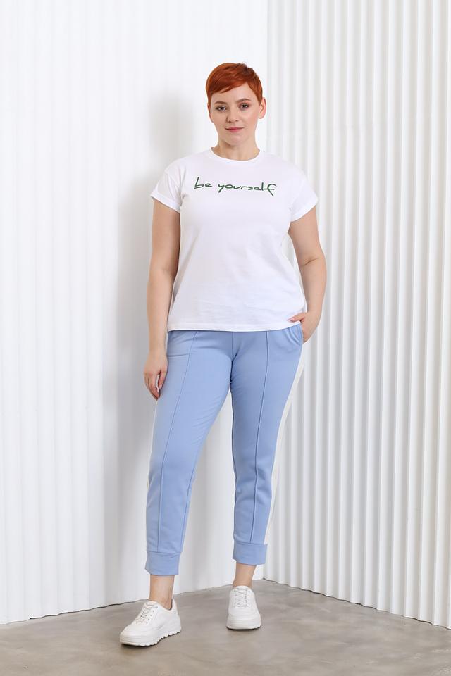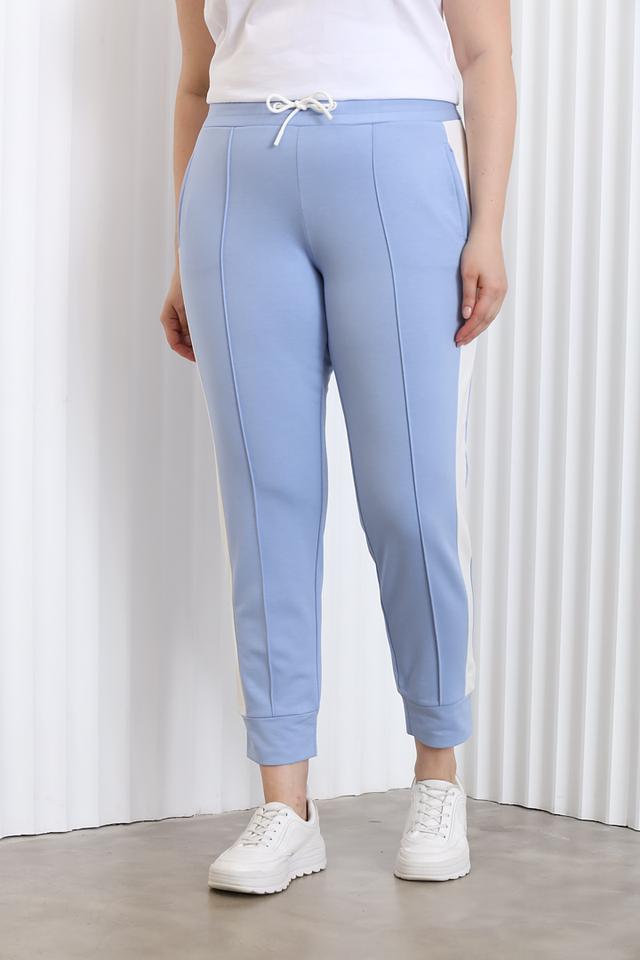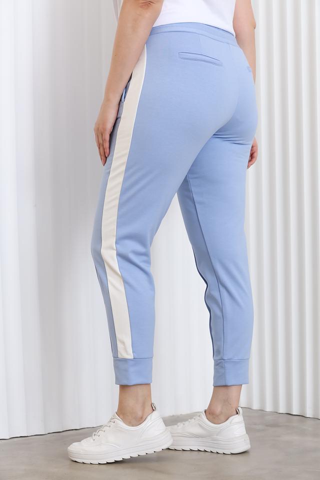 Женские спортивные брюки Olsen голубого цвета с контрастной белой полосой по бокам — удобный и стильный выбор для активного образа жизни. Модель выполнена из мягкого и приятного к телу материала с добавлением эластана для комфортной посадки. Состав: полиэстер 69%, вискоза 27%, эластан 4%
