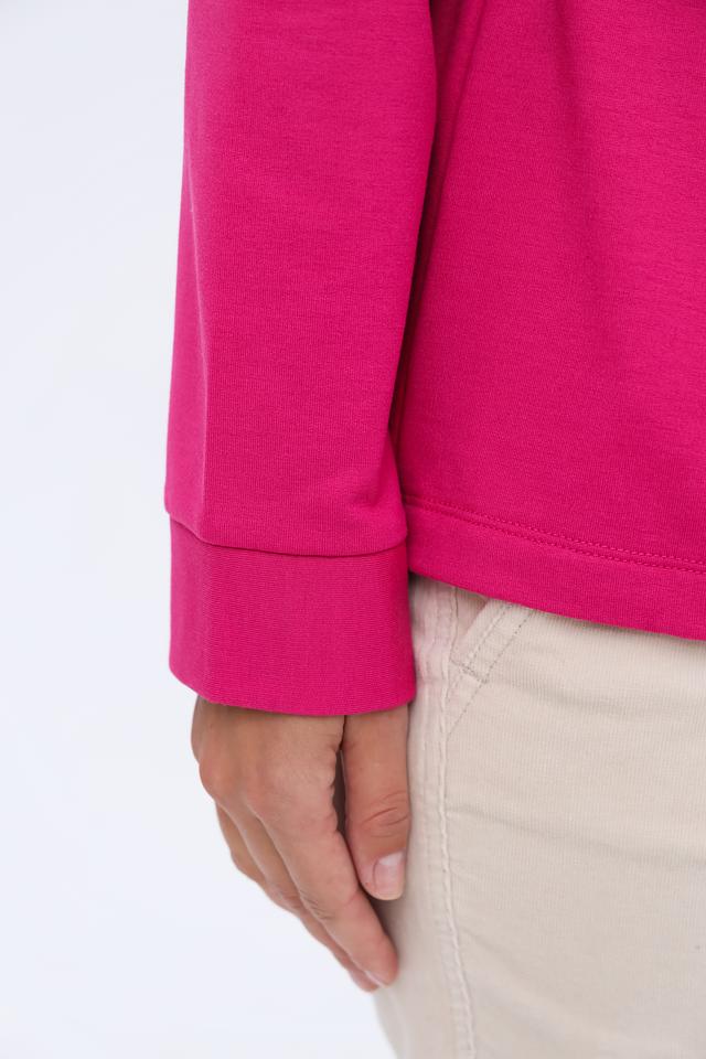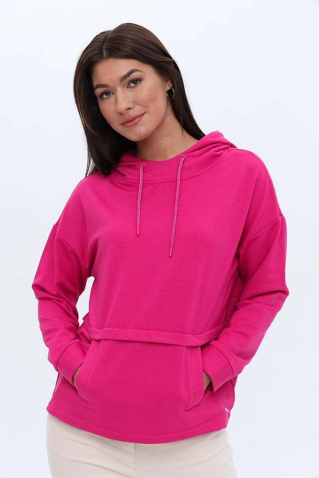 Эта женская толстовка от бренда Olsen выполнена в ярком фуксиевом цвете. Модель имеет свободный крой, который обеспечивает комфорт и свободу движений.