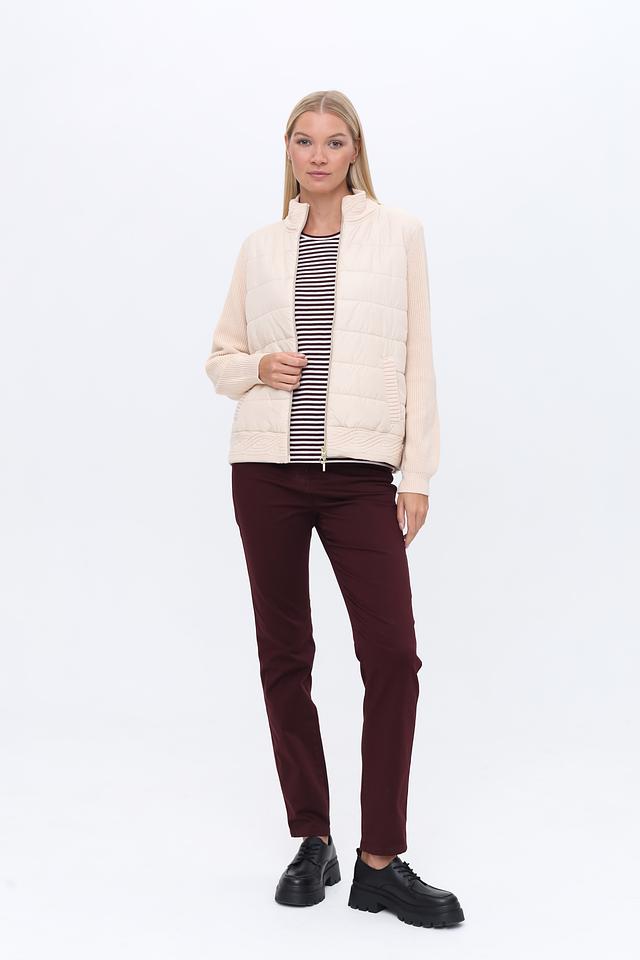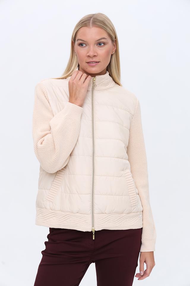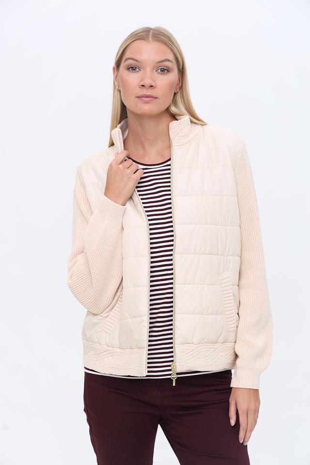 Жакет Olsen бежевого цвета – это стильное сочетание стеганой фактуры и вязаных рукавов. Модель застегивается на молнию, имеет воротник-стойку и удобную посадку. Идеальный выбор для создания комфортных и модных образов. Состав: хлопок 42%, полиэстер 30%, полиакрил 28%