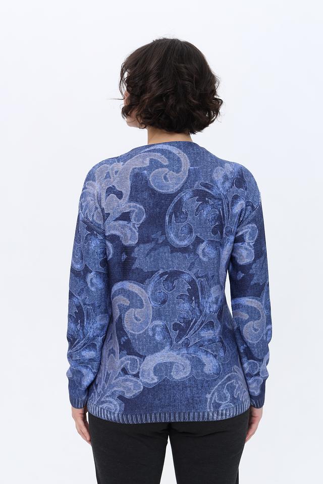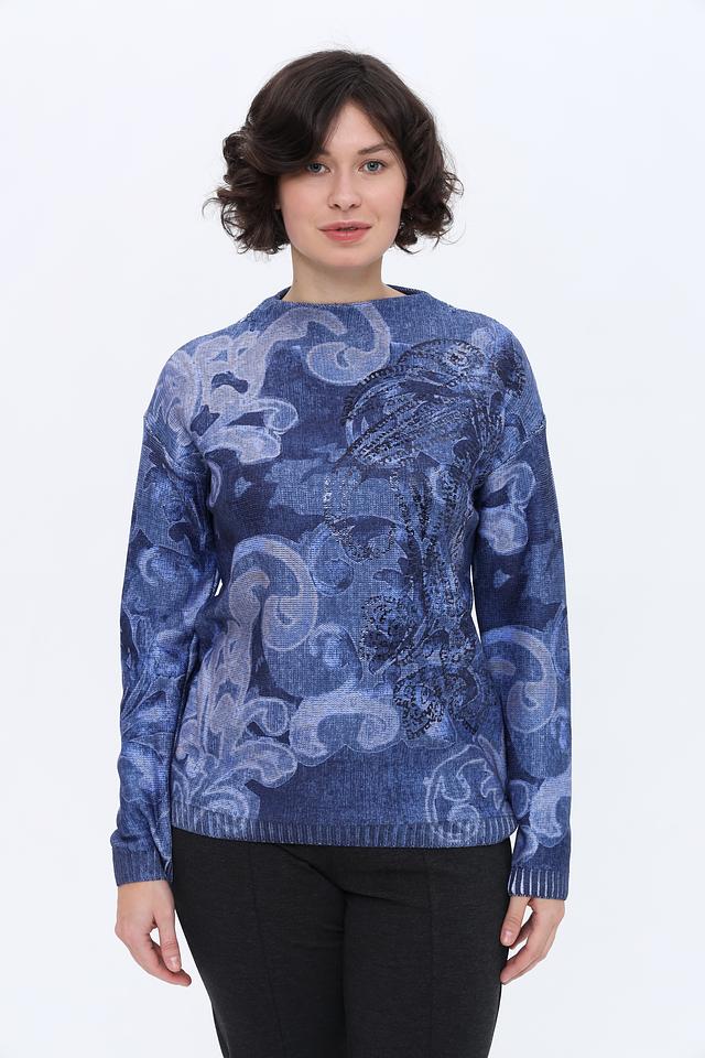 Синий пуловер Olsen с оригинальным узором станет стильным дополнением к вашему гардеробу. Модель выполнена из мягкого трикотажа с добавлением хлопка, что обеспечивает комфорт в носке. Пуловер идеально подходит для создания повседневных образов. Состав: полиакрил 77%, хлопок 17%, полиамид 6%
