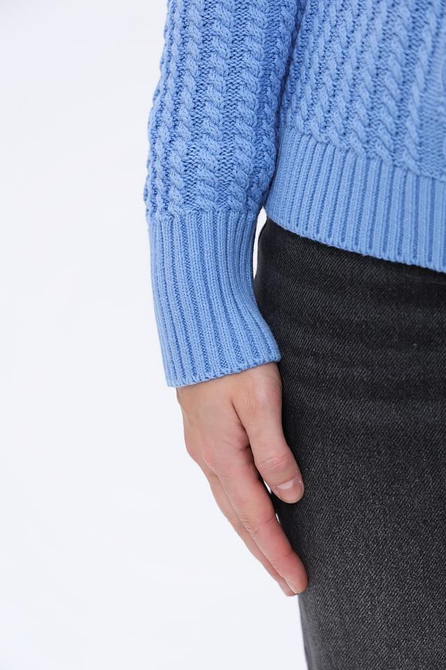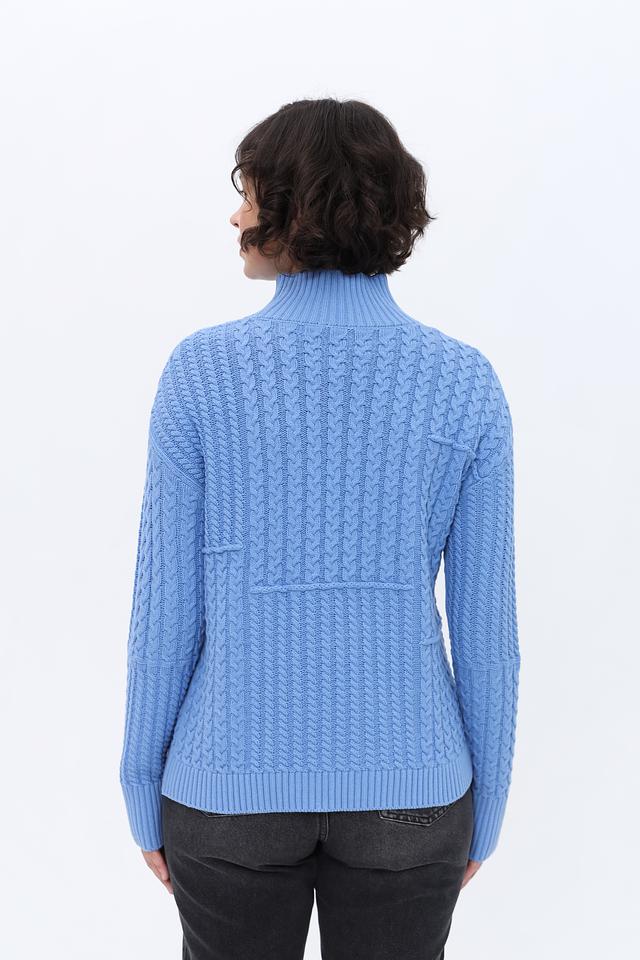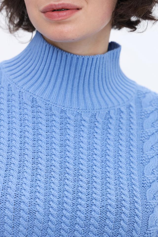 Голубой пуловер от Olsen из хлопка и полиакрила с выразительным узором из кос. Модель с высоким воротом и рукавами средней длины станет отличным дополнением к вашему гардеробу. Состав: хлопок 60%, полиакрил 40%