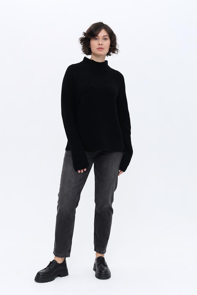 Пуловер легко сочетается с джинсами, брюками или юбками, что позволяет создавать разнообразные образы. Он станет отличным дополнением к вашему осенне-зимнему гардеробу. Универсальный чёрный цвет позволяет легко комбинировать пуловер с другими элементами одежды и аксессуарами.
