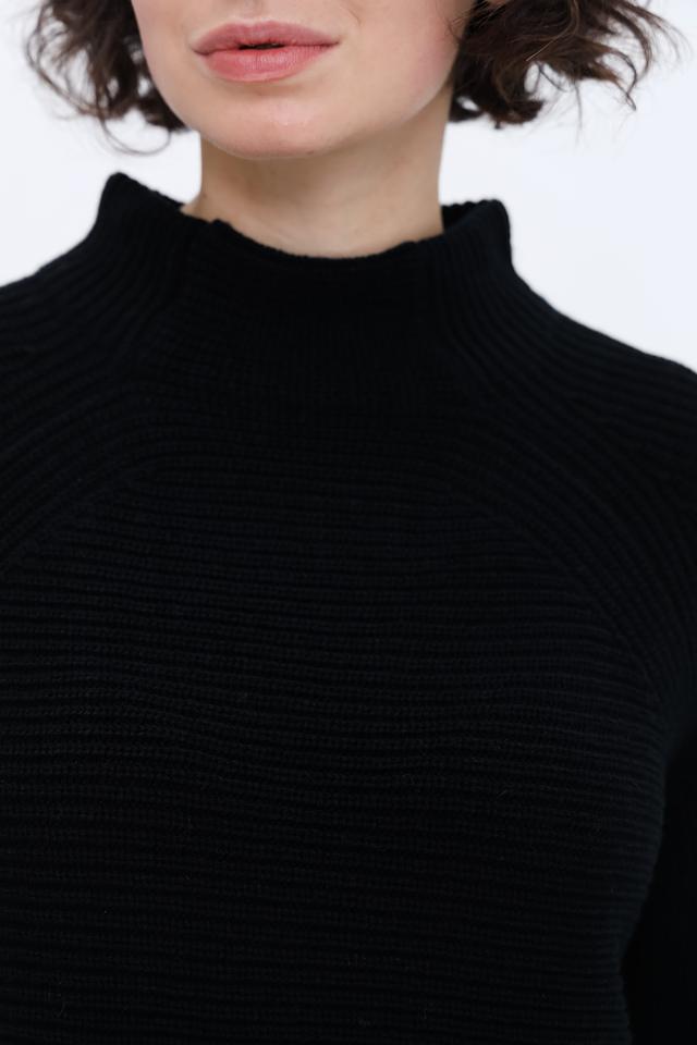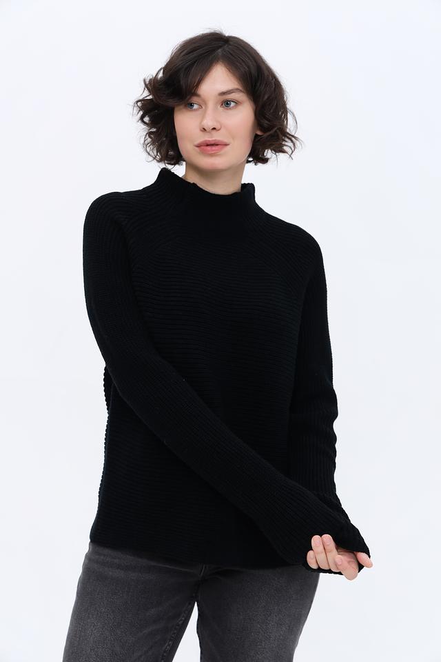 Чёрный пуловер от Olsen с высоким горлом выполнен из мягкого трикотажа. Классический крой и текстурная вязка делают этот пуловер универсальным элементом гардероба. Состав: шерсть 50%, полиакрил 50%