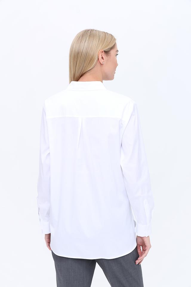 Рубашка имеет длинные рукава и застегивается на пуговицы по всей длине. Воротник рубашки классической формы. Благодаря своему универсальному дизайну, эта рубашка легко сочетается с различными элементами одежды – от брюк и юбок до джинсов.