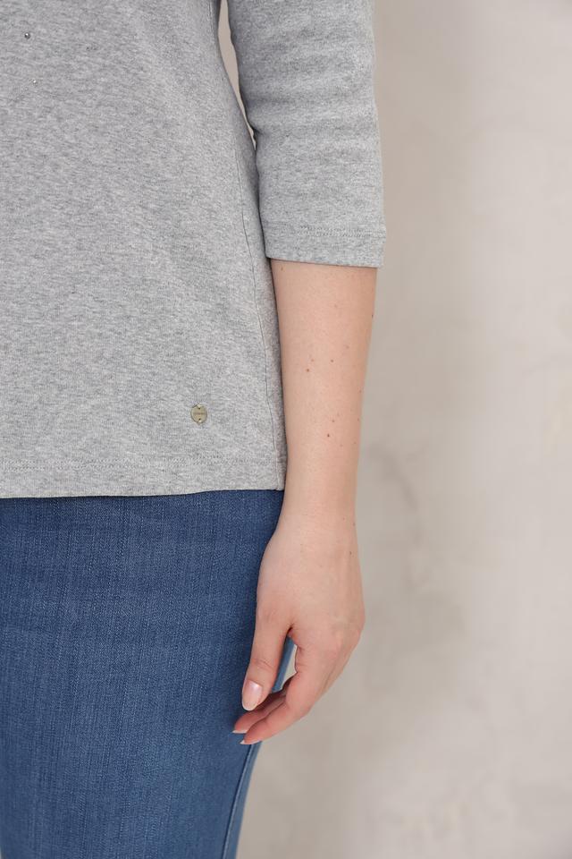 Серая футболка Olsen с декоративной отделкой из пайеток станет отличным дополнением к вашему гардеробу. Модель выполнена из мягкого хлопка, обеспечивающего комфорт в носке, и имеет удобный крой. Состав: хлопок 100%