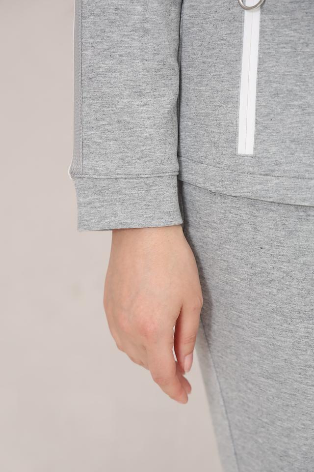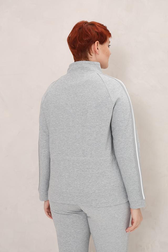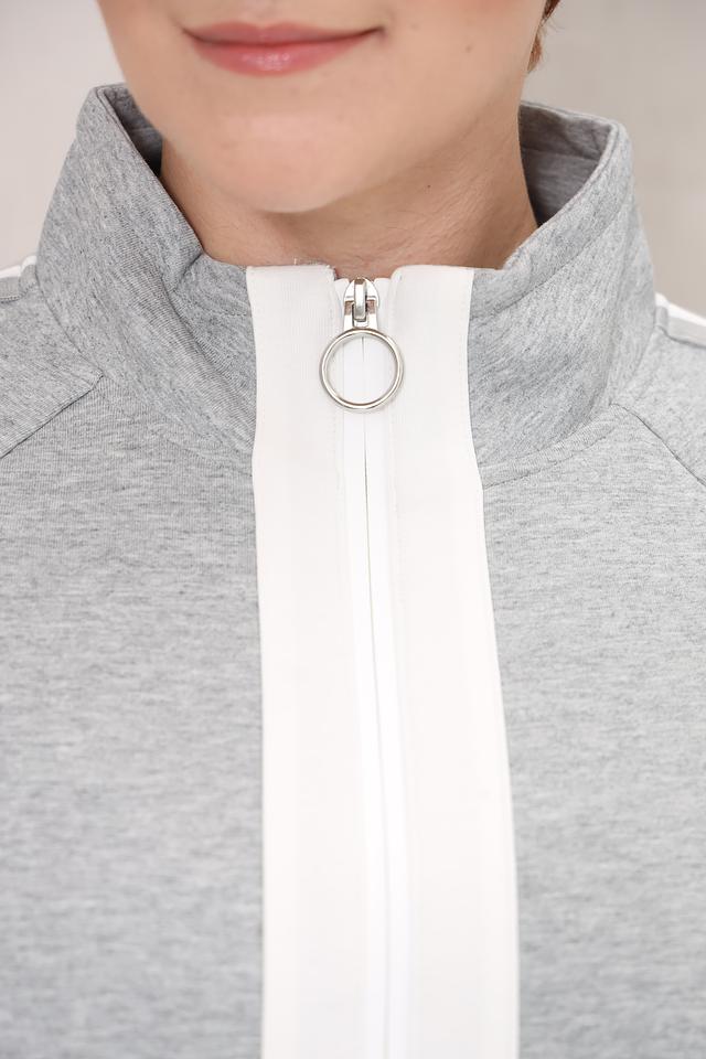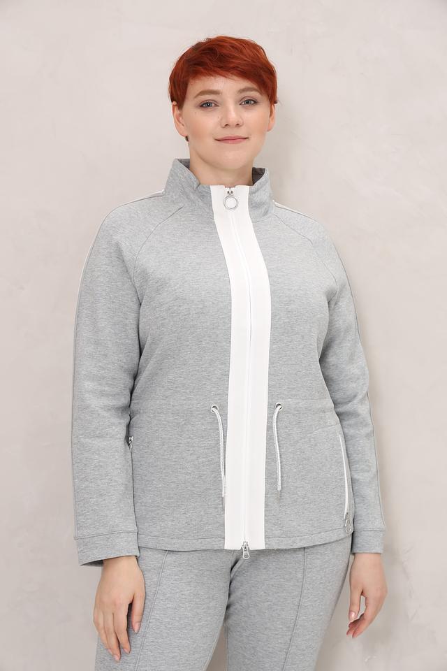 Этот жакет от Olsen станет отличным дополнением к вашему образу. Он выполнен в сером цвете и имеет контрастную белую молнию, а также белые полосы по бокам. Жакет имеет удобную застежку-молнию, боковые карманы и воротник-стойку.