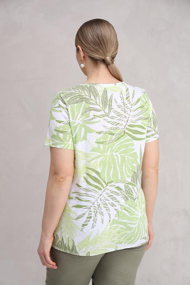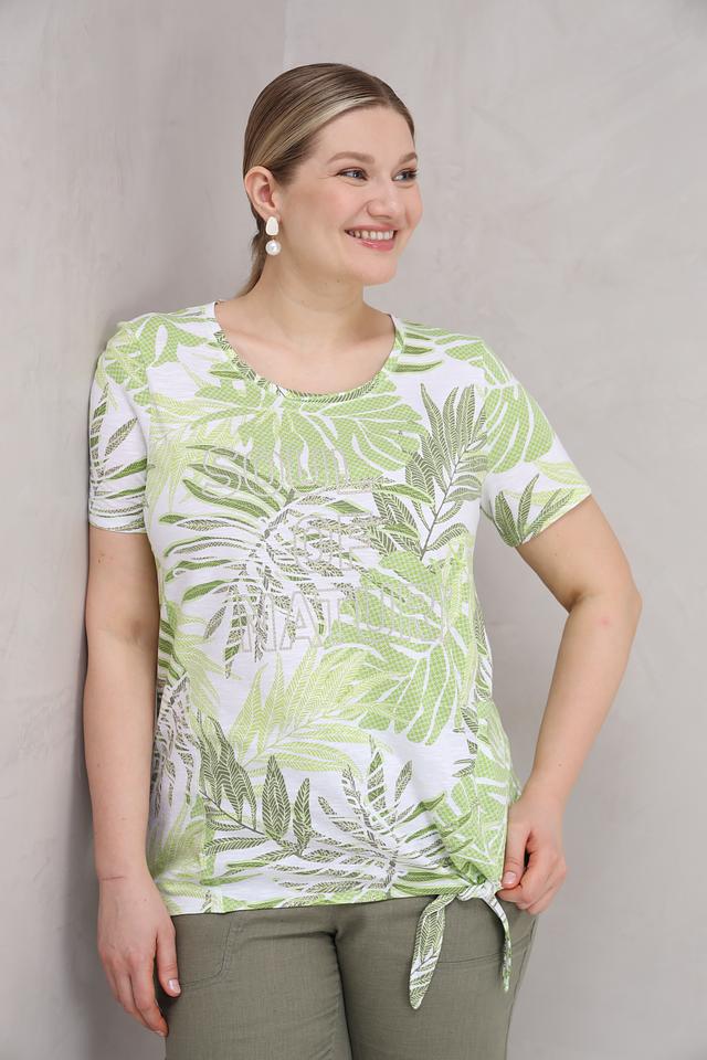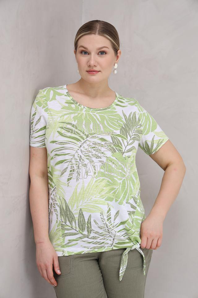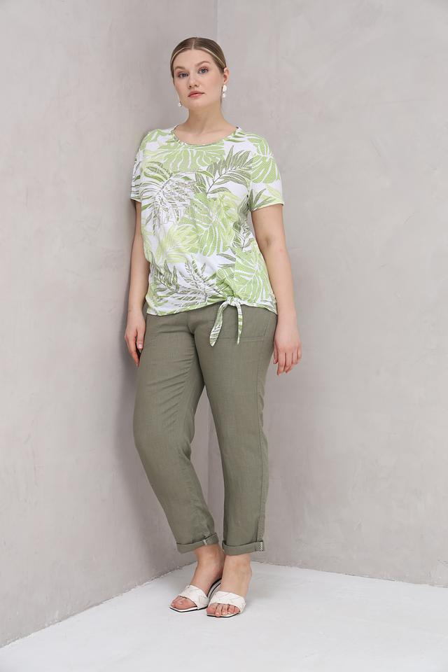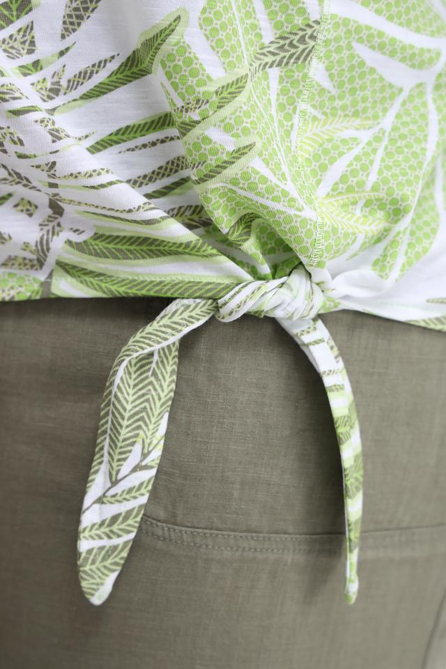 Блуза Olsen лайм с ярким растительным принтом и удобной завязкой. Изготовлена из 100% хлопка, обеспечивающего комфорт в носке. Стильный и легкий вариант для создания повседневных образов. Состав: хлопок 100%